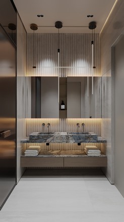 • Modern bathrooms feature high-quality fixtures and elegant finishes.
