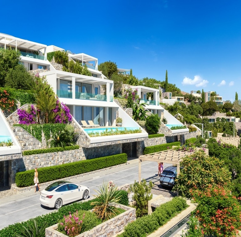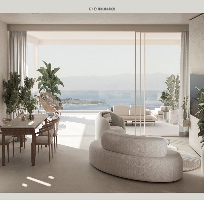 Welcome to the Terrace Villas – a limited collection of just sixteen luxurious 2- and 3-bedroom duplex villas, perfectly positioned on the coast of Crete with panoramic views over the shimmering waters of Mirabello Bay. Designed to embrace the essence of modern Mediterranean island living, these spacious homes range from 245–350 sqm of beautifully finished interiors, with expansive terraces and landscaped gardens of up to 2,000 sqm.