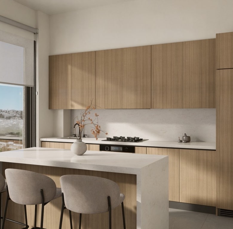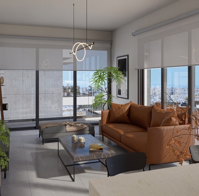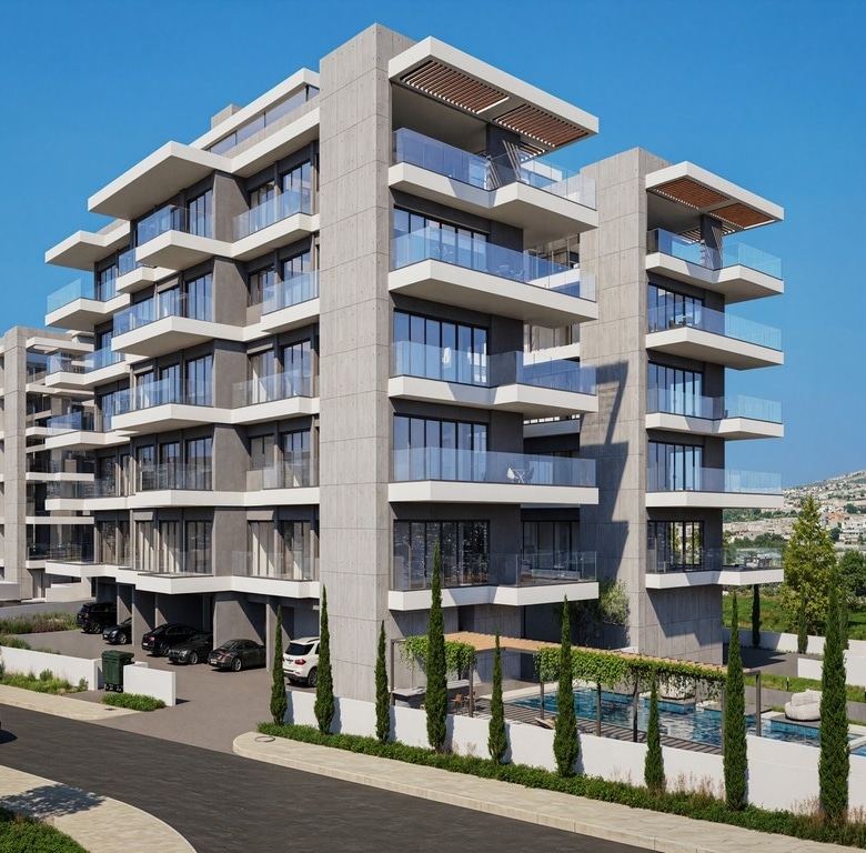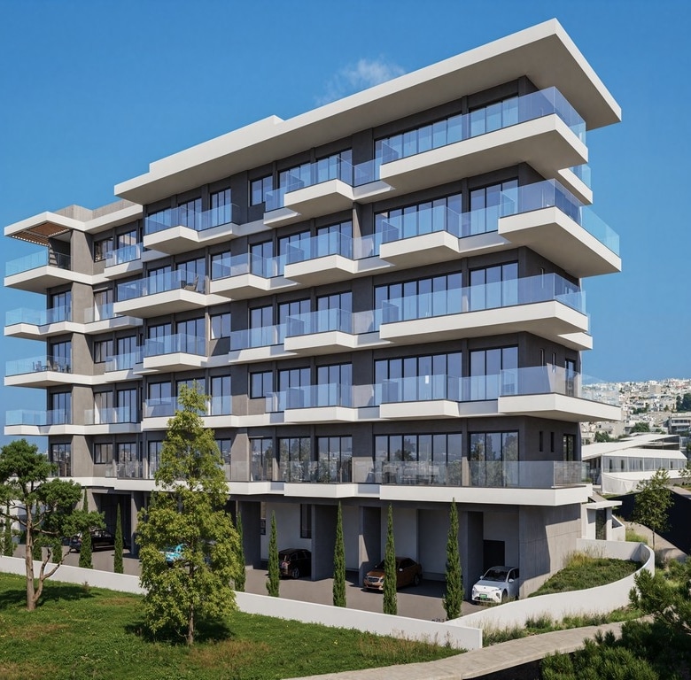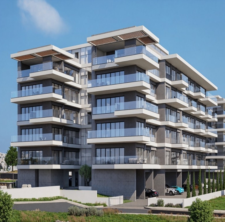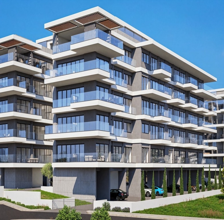 Galaxy Residences is a contemporary development comprising two five-storey buildings with a selection of 2- and 3-bedroom apartments, most of which enjoy excellent sea views. The project has been carefully designed with modern architecture, large windows, sleek lines, and concrete finishes, combining style with functionality.