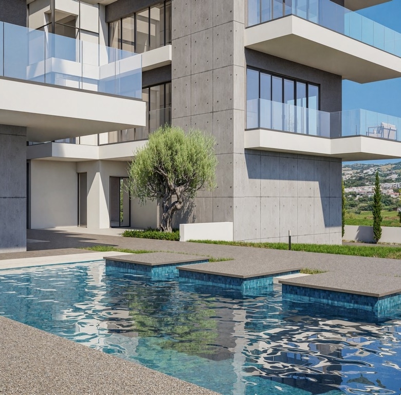 Galaxy Residences is a contemporary development comprising two five-storey buildings with a selection of 2- and 3-bedroom apartments, most of which enjoy excellent sea views. The project has been carefully designed with modern architecture, large windows, sleek lines, and concrete finishes, combining style with functionality.