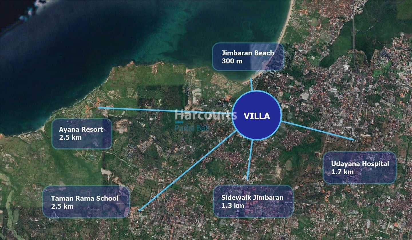 Movenpick Hotel 200 m, Sundara Beach Club 250 m, Jimbaran Beach 250 m, Rock Bar Ayana Hotel 2.5 km.