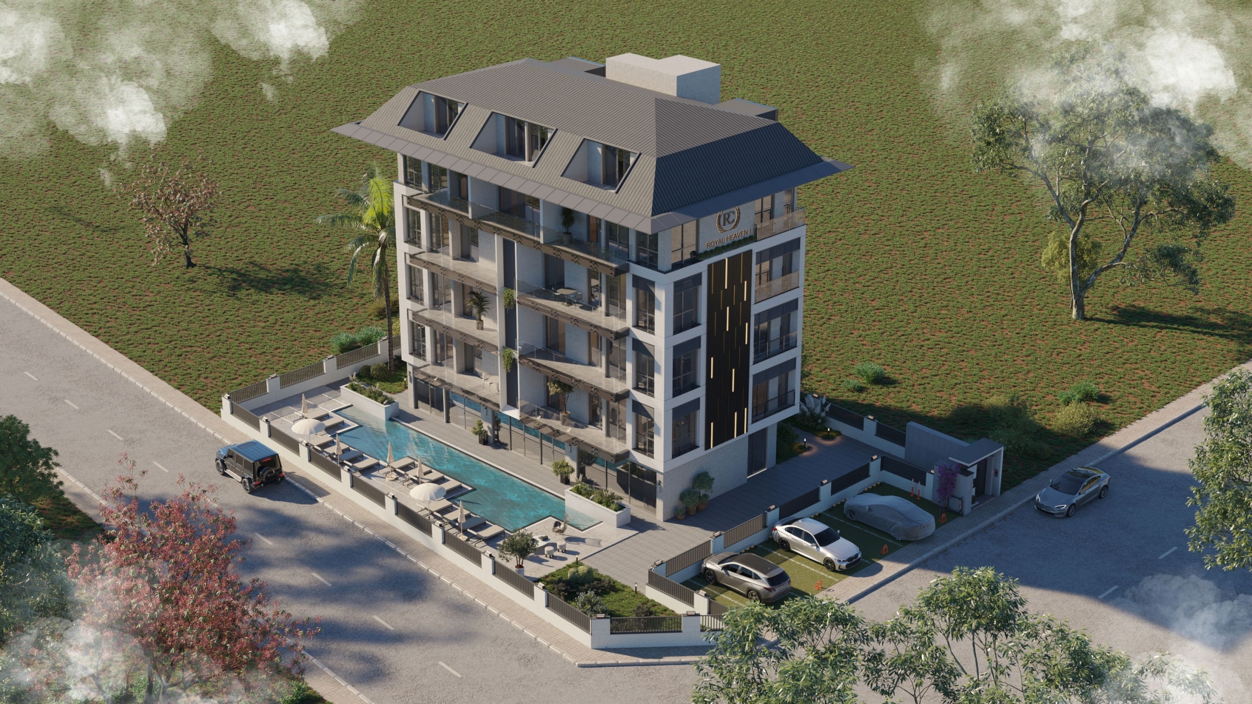 Welcome toRoyal Heaven, a boutique residential project by Royal Construction, where design meets location in perfect harmony. Located on an elevated plot inDinek, this modern residence offersuninterrupted views of the sea and complex amenitiesfrom every unit — and it’s just400 meters from Cleopatra Beach.