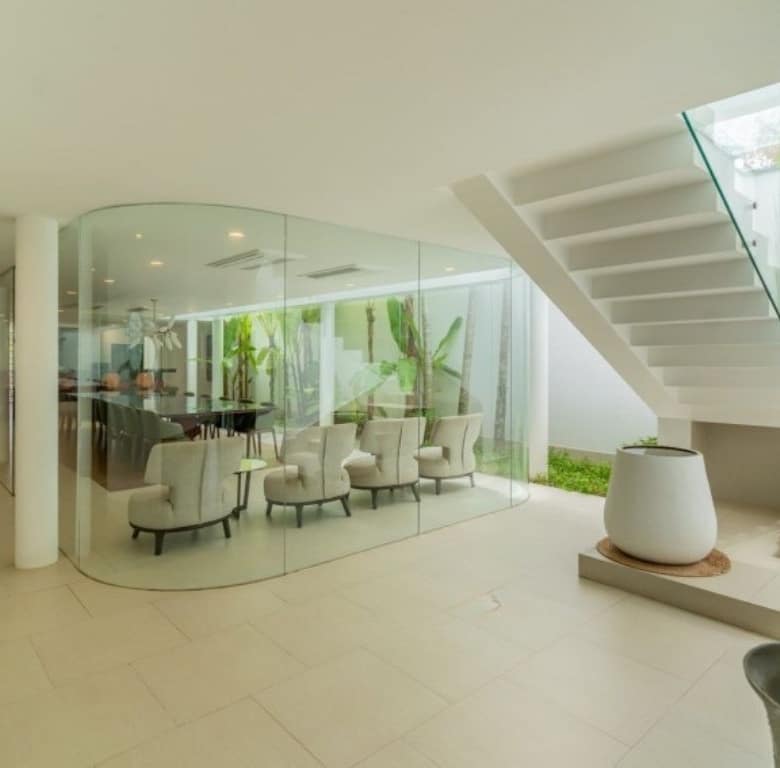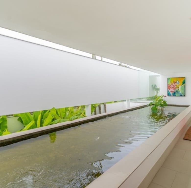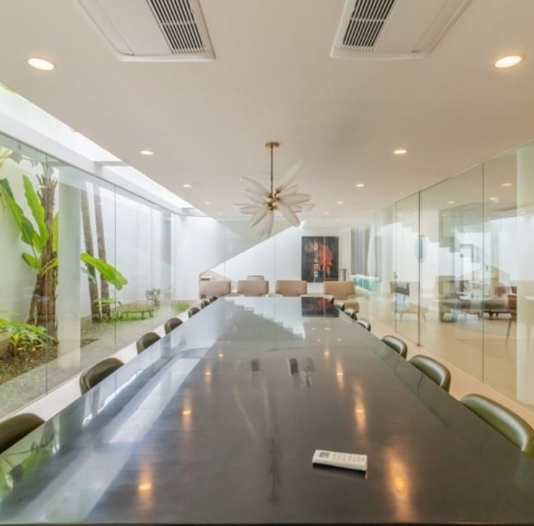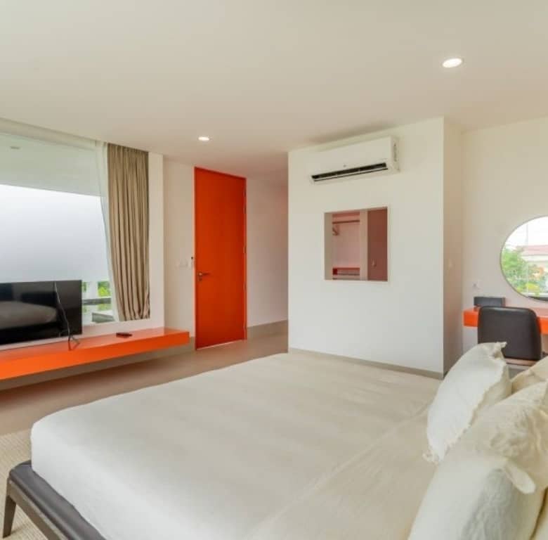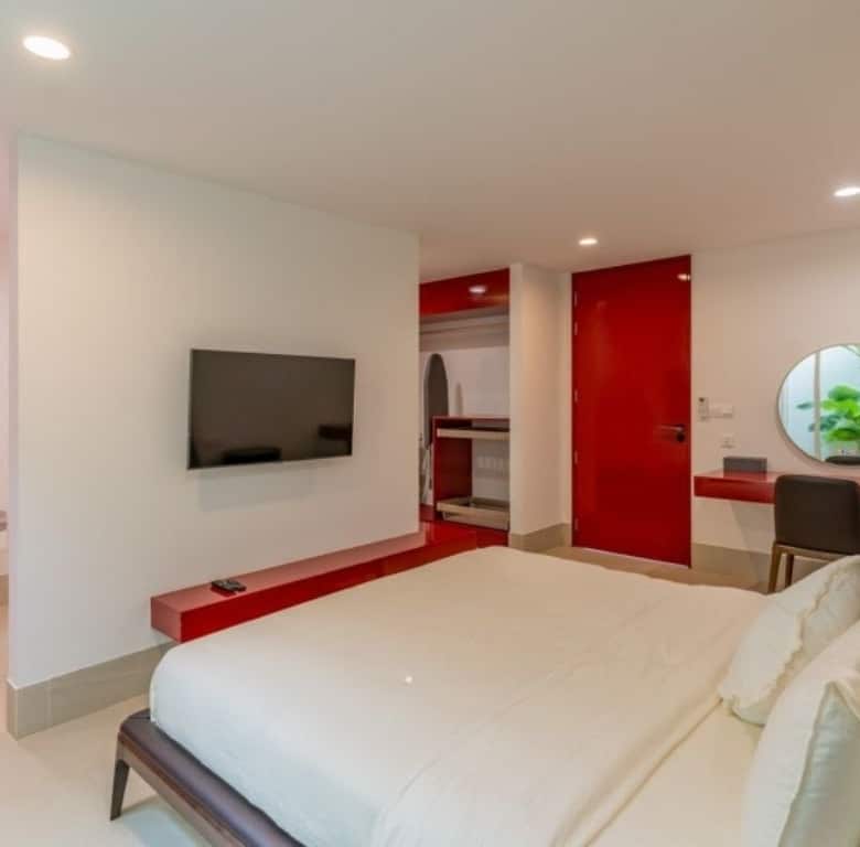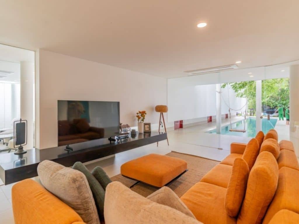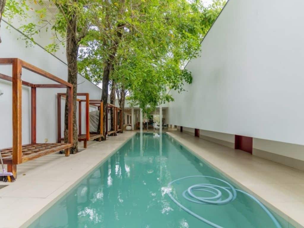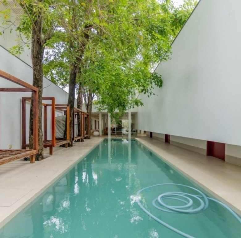 It’s sure to be the site of multiple dream vacations, or even a contemporary residence for long-term living in Phnom Penh. Among the unique elements of this home are multiple ponds, a pool swing, canopy-style lounge chairs, and wooden walkways throughout the garden and lawn area. The main living hall is a spacious, L-shaped space with a big lounge on one end and the kitchen/dining area on the other, the latter sporting a semi-outdoor position. There’s a long table that can seat up to 14 diners in this space, as well as a comprehensive kitchen setup with a built-in cooker, range hood, oven, and integrated refrigerator as well as a wide breakfast nook. While the bedrooms vary in size, all are guaranteed furnished to deluxe standard with queen-sized beds, space-saving fixtures, generous amounts of natural light flooding in through large windows, and luxury en suite bathrooms. You can be sure that every member of the household, whether to be used for long holidays or as a default residence, will have plenty of room in this house to be productive, rest, pursue their passions and recreational interests, and even stay healthy mentally and physically.