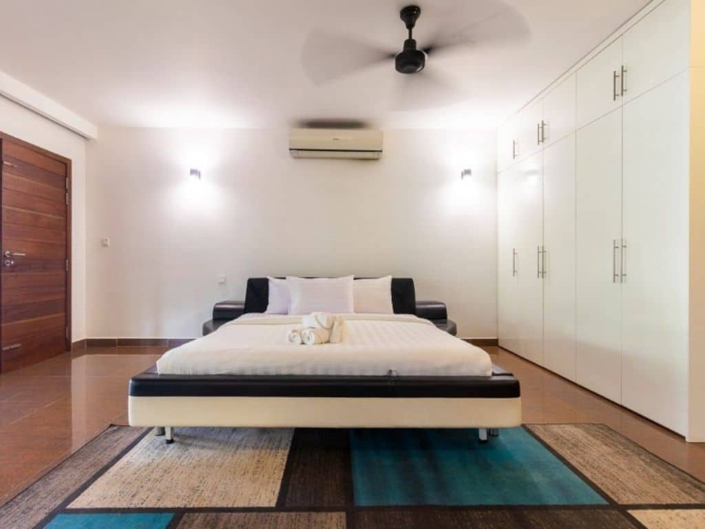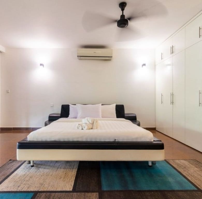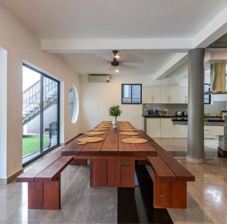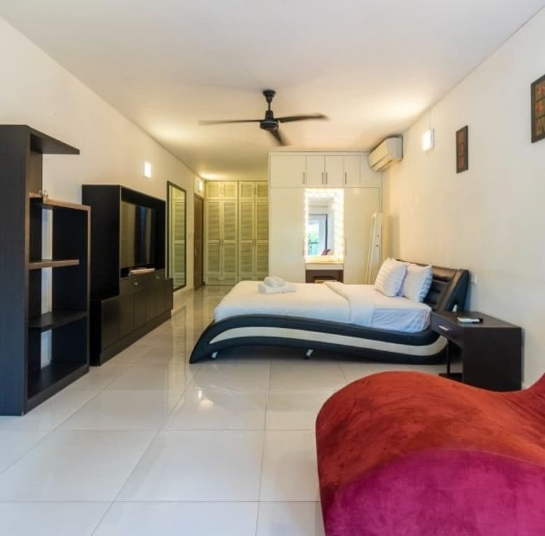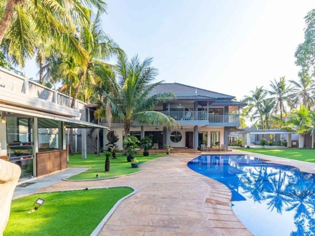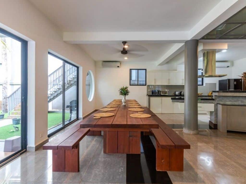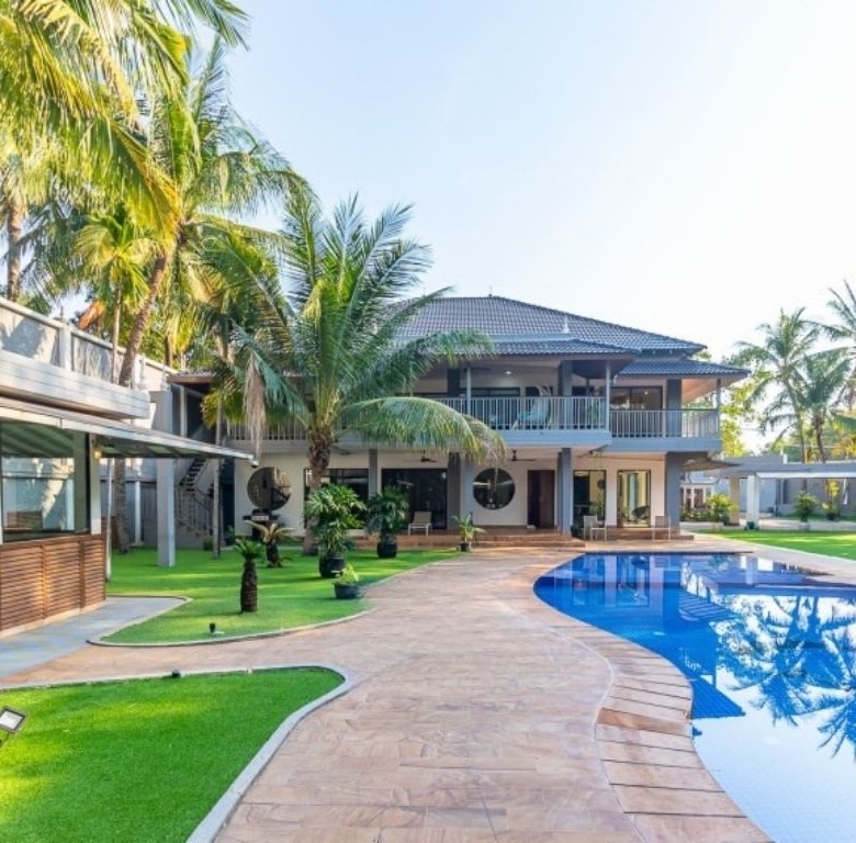 This is a rare opportunity to acquire this luxury Siem Reap villa, a six-bedroom residence with a private swimming pool and plenty of extra land area for additional construction or commercial development. Surrounding views of tropical greenery dominate the outside, while the main villa features spacious halls with its open-floor living area, fully functional kitchen with granite countertops, and generous pantry space. All bedrooms are air-conditioned and fitted with en suite bathrooms, with three (3) of the rooms having access to the covered 42-sqm. balcony. Plenty of floor-to-ceiling windows provide optimum ventilation and copious amounts of sunlight throughout the villa. Moreover, the property includes a fully self-contained home for staff to live in, including a kitchen, lounge, bedroom, and bathroom. Built to last and ensure easy maintenance, this grand villa is sure to be a memorable home away from home in this quiet and popular Siem Reap neighborhood. The land is also a corner block, with 40 meters of street frontage along two (2) major roads, thus making it a prime location that will only grow in value over the next five (5) years.