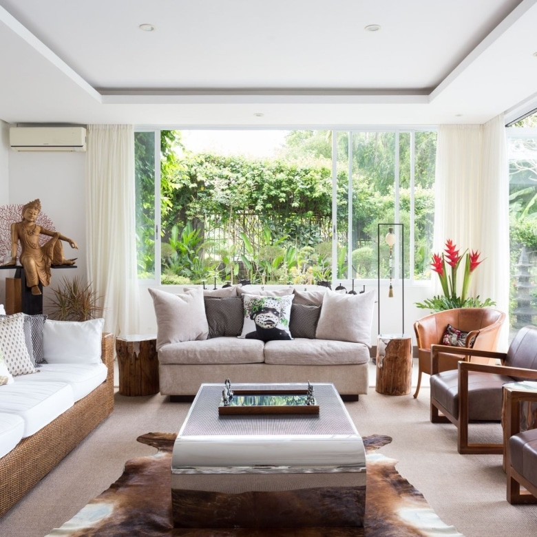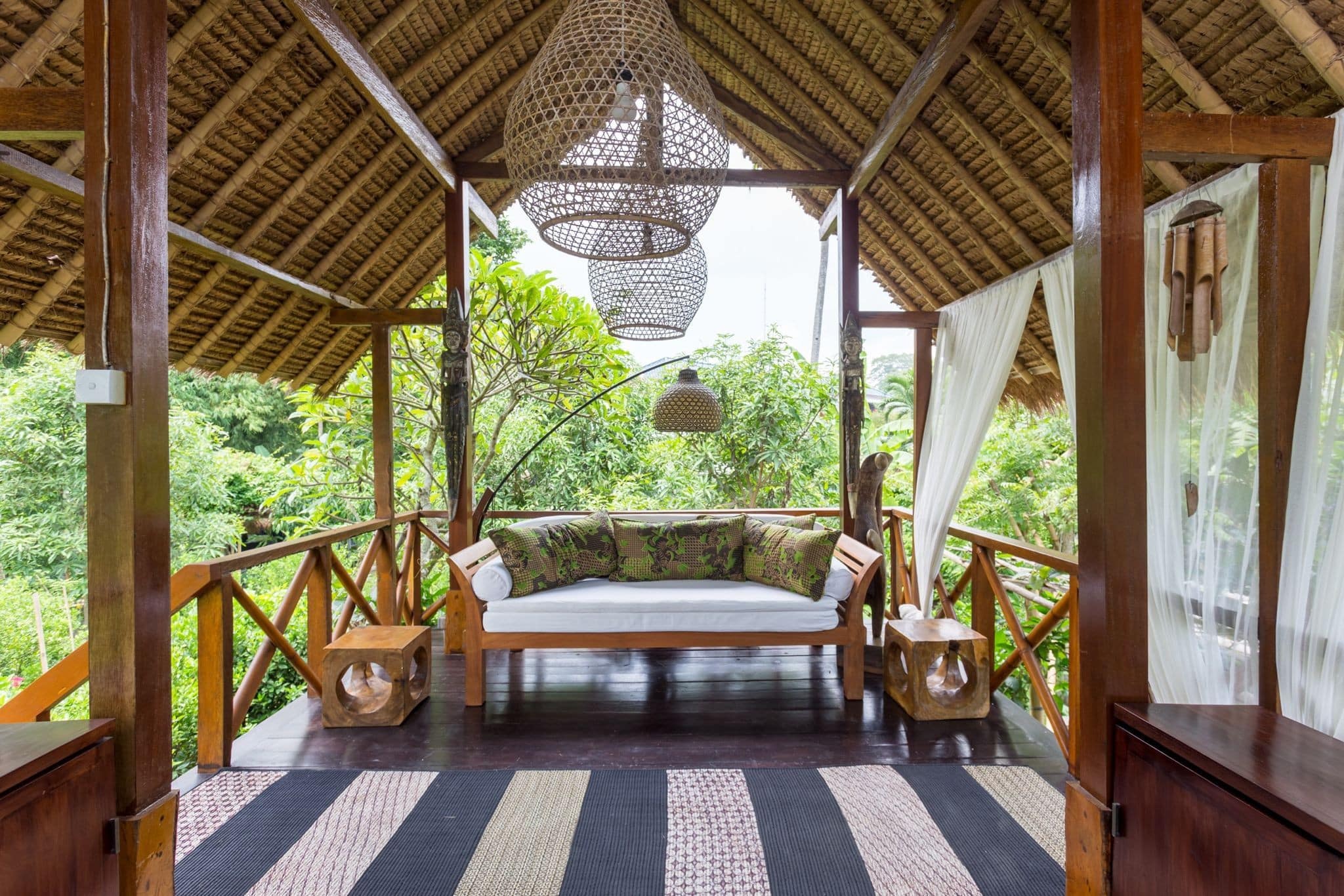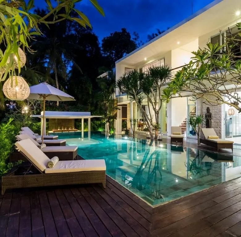 A blissful 6-bedroom haven located in Tumbak Bayuh, an area loved for its tranquillity yet a short drive to the hotspots of Pererenan and the beaches of Canggu. The property occupies a FREEHOLD plot of 1350 sqm with an additional 1000 sqm of leasehold land on which you will find an amazing orchard filled with many varieties of fruit trees and vegetables. There is also a charming wooden building in the orchard that can be used as an additional entertainment space – the perfect spot for afternoon tea.
