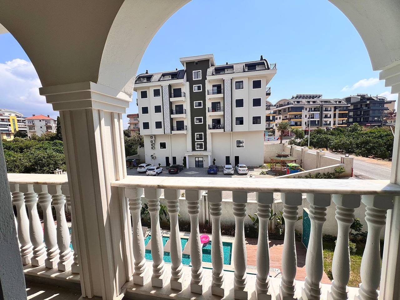 Families will appreciate the child-friendly amenities, including a children’s park, room, and pool, as well as the thrilling waterslide for endless fun. The property also caters to relaxation and wellness with its massage room, sauna, salt room, and traditional Turkish bath. For outdoor enthusiasts, the lush green areas, garden, and barbecue facilities provide a perfect setting for leisure and social gatherings.