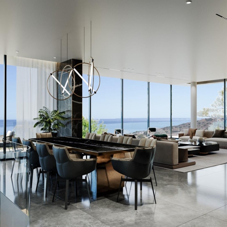 The exceptional Villa, situated in the prestigious Amathounta area, offers an unrivaled blend of panoramic sea and mountain views. This luxurious residence features high ceilings, top-quality finishes, and cutting- dge appliances, including a VRV system, underfloor heating, and floor-to-ceiling windows that frame breathtaking vistas from every room. The smart home system integrates seamlessly with a spacious lounge area, complete with a spa, gym, jacuzzi, and an aquarium. Set on a 1,269 m² plot with a 760 m² covered area, the villa spans three floors and includes five bedrooms, a nanny’s room, and a guest room. Its stunning amenities feature two swimming pools and a magnificent roof garden with unobstructed sea views. With all building permits in place, this extraordinary villa is ready to become your dream home.