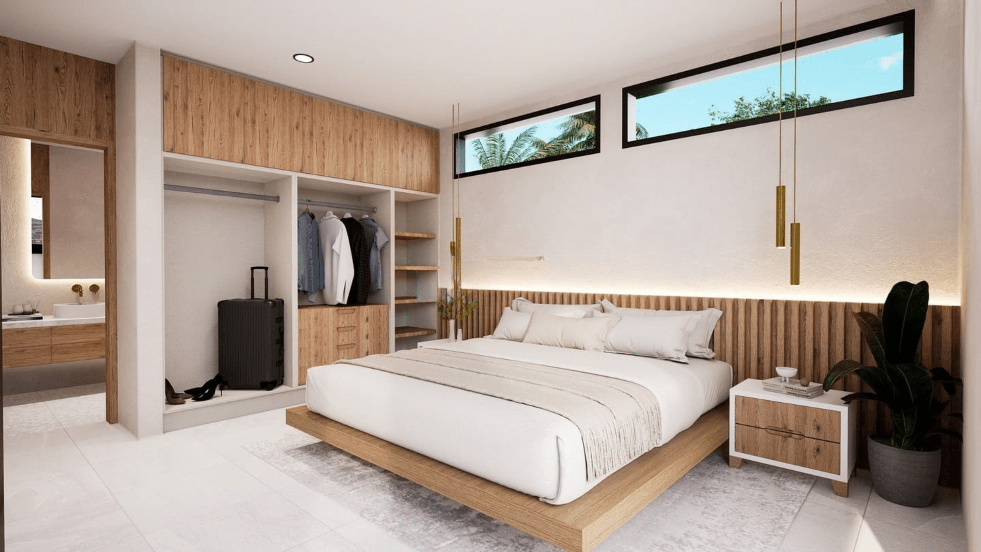 The residences are designed with a contemporary aesthetic, emphasizing clean lines and open living and kitchen spaces while incorporating warm, cozy elements that make you feel at home.