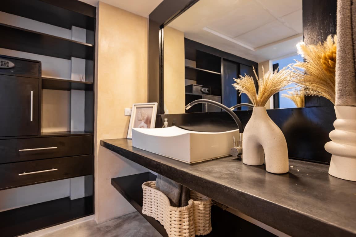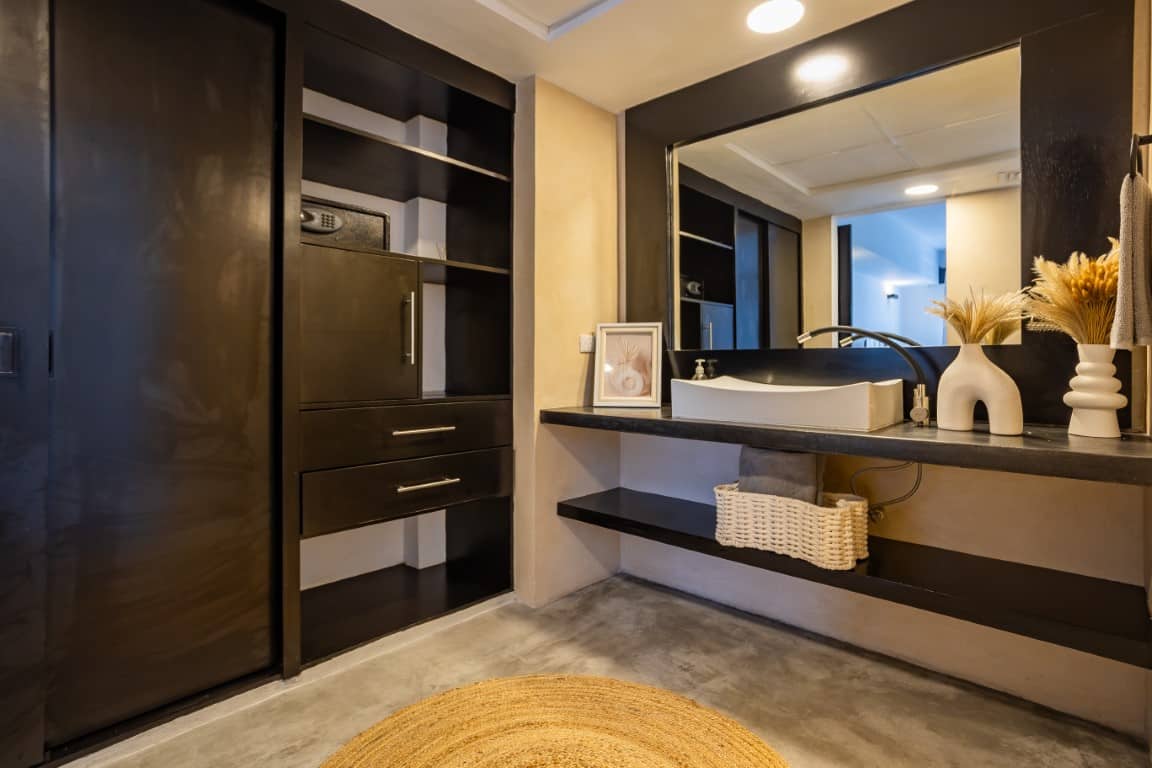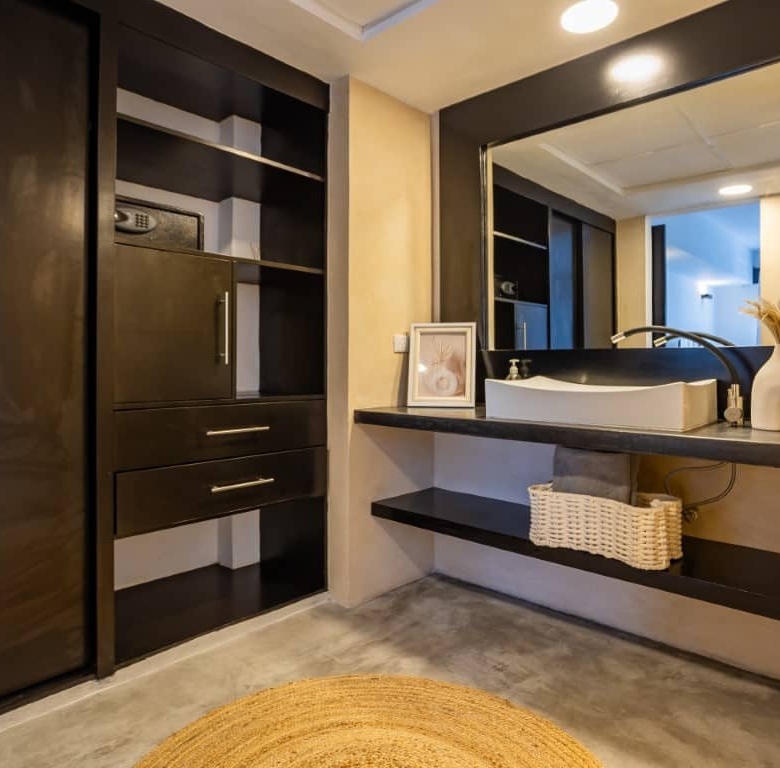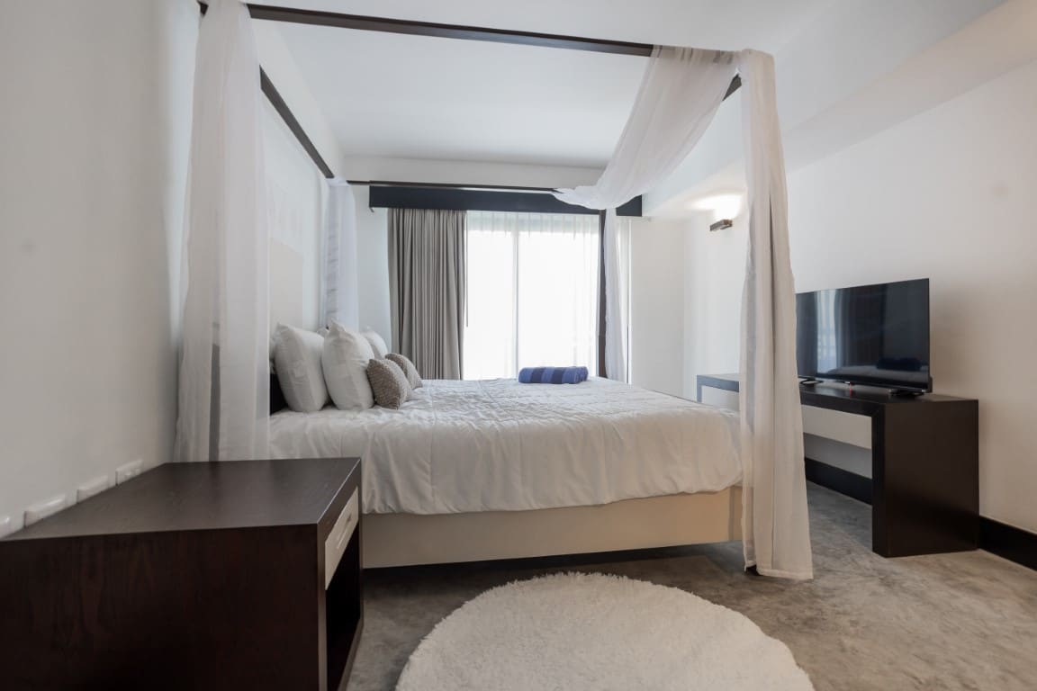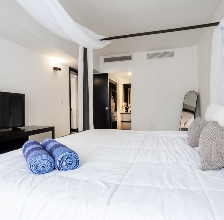 Known for its zen-like ambiance, Aldea Thai is designed to be a sanctuary of peace amidst Playa del Carmen’s vibrant energy. The complex is enhanced by Asian-inspired sculptures and rock gardens, adding to the tranquil environment. Residents and guests can unwind at the pristine pool with plush lounge seating, shaded by umbrellas, or visit the thatched-roof swim-up bar for refreshing drinks and light snacks. With direct access to Playa del Carmen’s stunning white sand beaches, this property is ideally positioned for sun-seekers and ocean lovers.