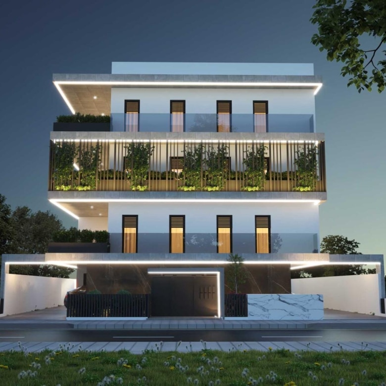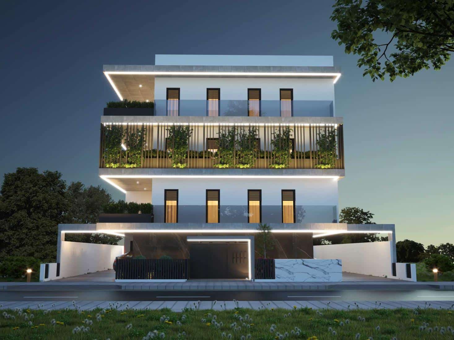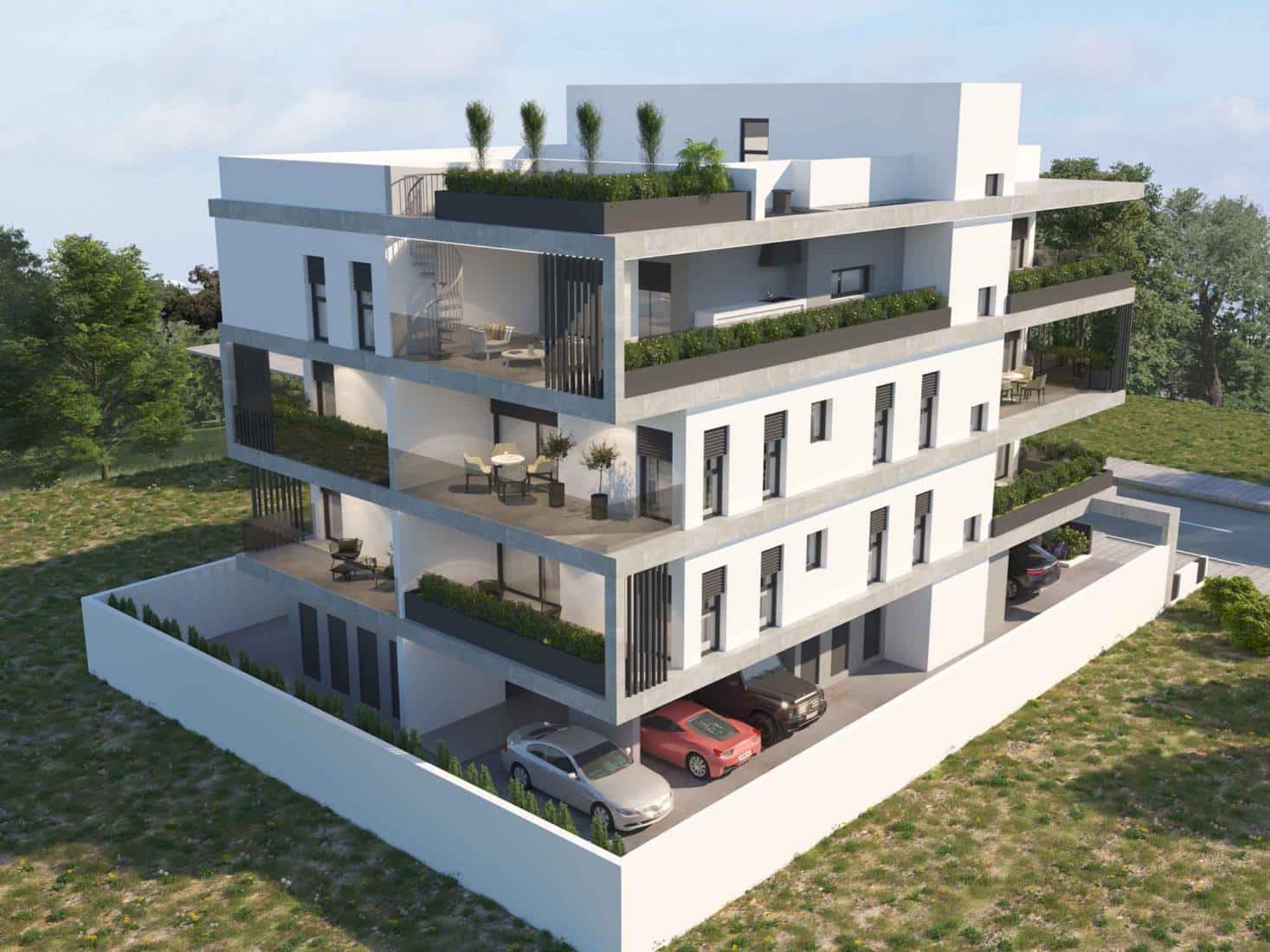 Located in the heart of Strovolos with profound architecture, quality construction and excellent location. The building consists of three levels and a ground level with covered parking spaces and dedicated storage areas for all residents. The property comprises of eight apartments with brilliant full height windows and an abundance of daylight. The profound design and finishes of the building along with the spacious layout, make it ideal for individuals and families. The development consists of 2 bedroom apartments and a signature 3 bedroom penthouse apartment with large covered verandas and a roof terrace with sweeping views of the city.