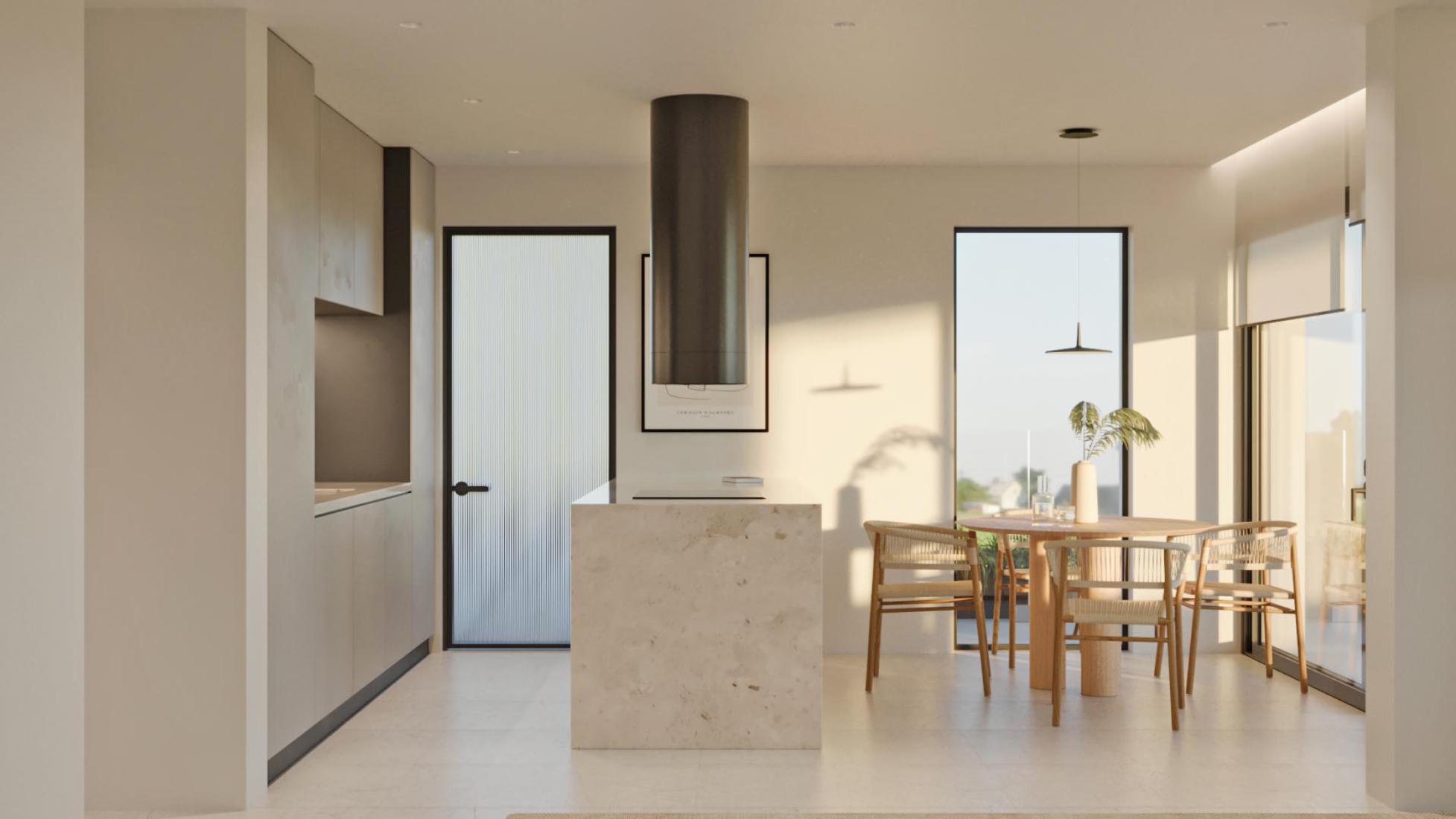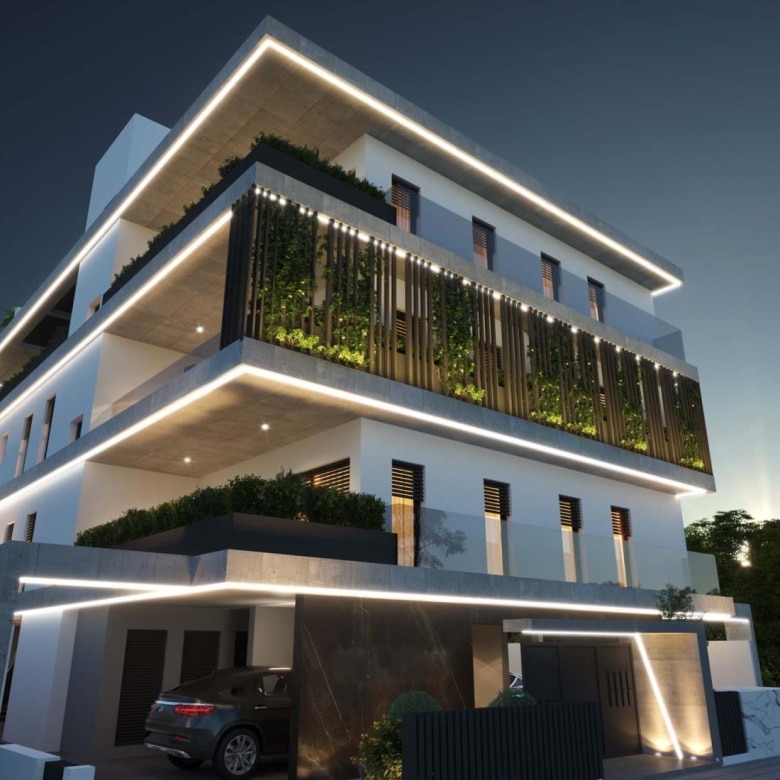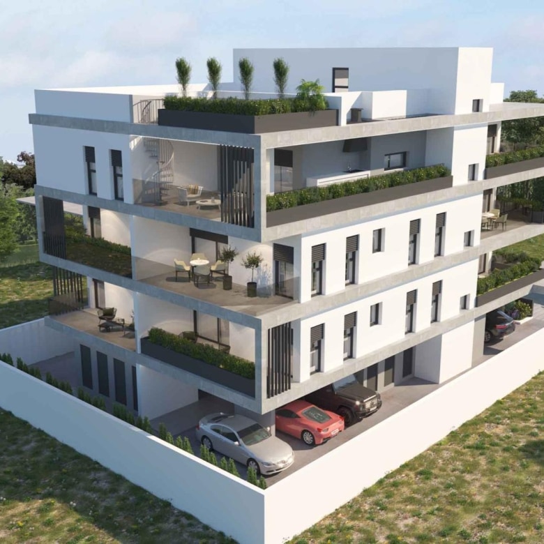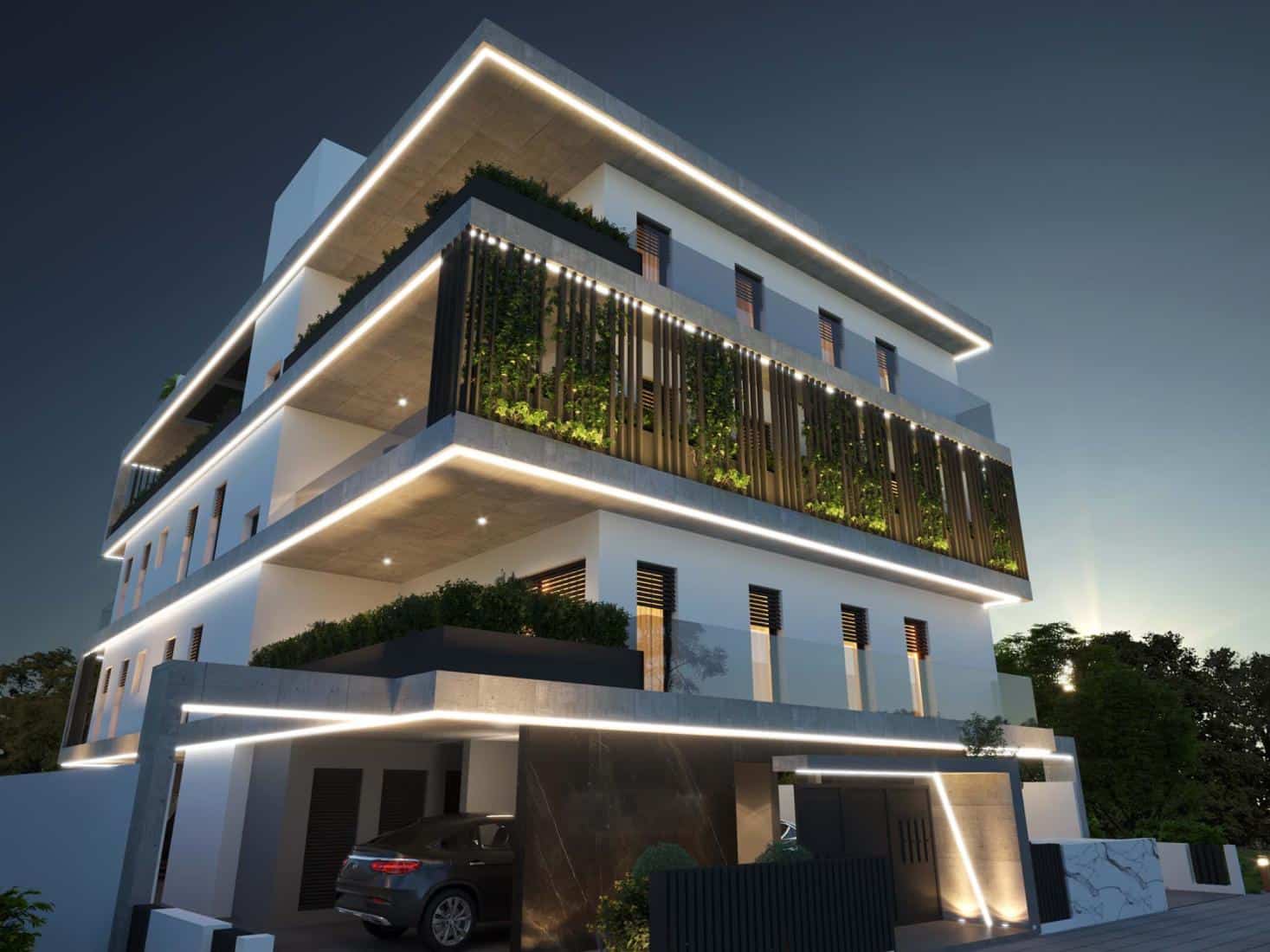 Located in the heart of Strovolos with profound architecture, quality construction and excellent location. The building consists of three levels and a ground level with covered parking spaces and dedicated storage areas for all residents. The property comprises of eight apartments with brilliant full height windows and an abundance of daylight. The profound design and finishes of the building along with the spacious layout, make it ideal for individuals and families. The development consists of 2 bedroom apartments and a signature 3 bedroom penthouse apartment with large covered verandas and a roof terrace with sweeping views of the city.