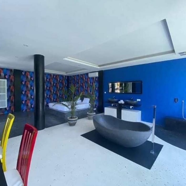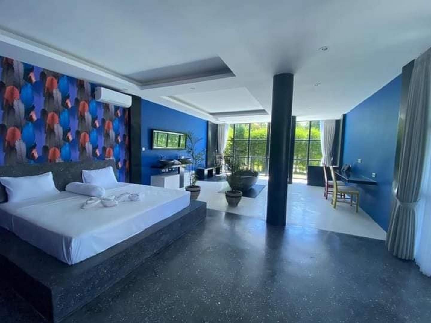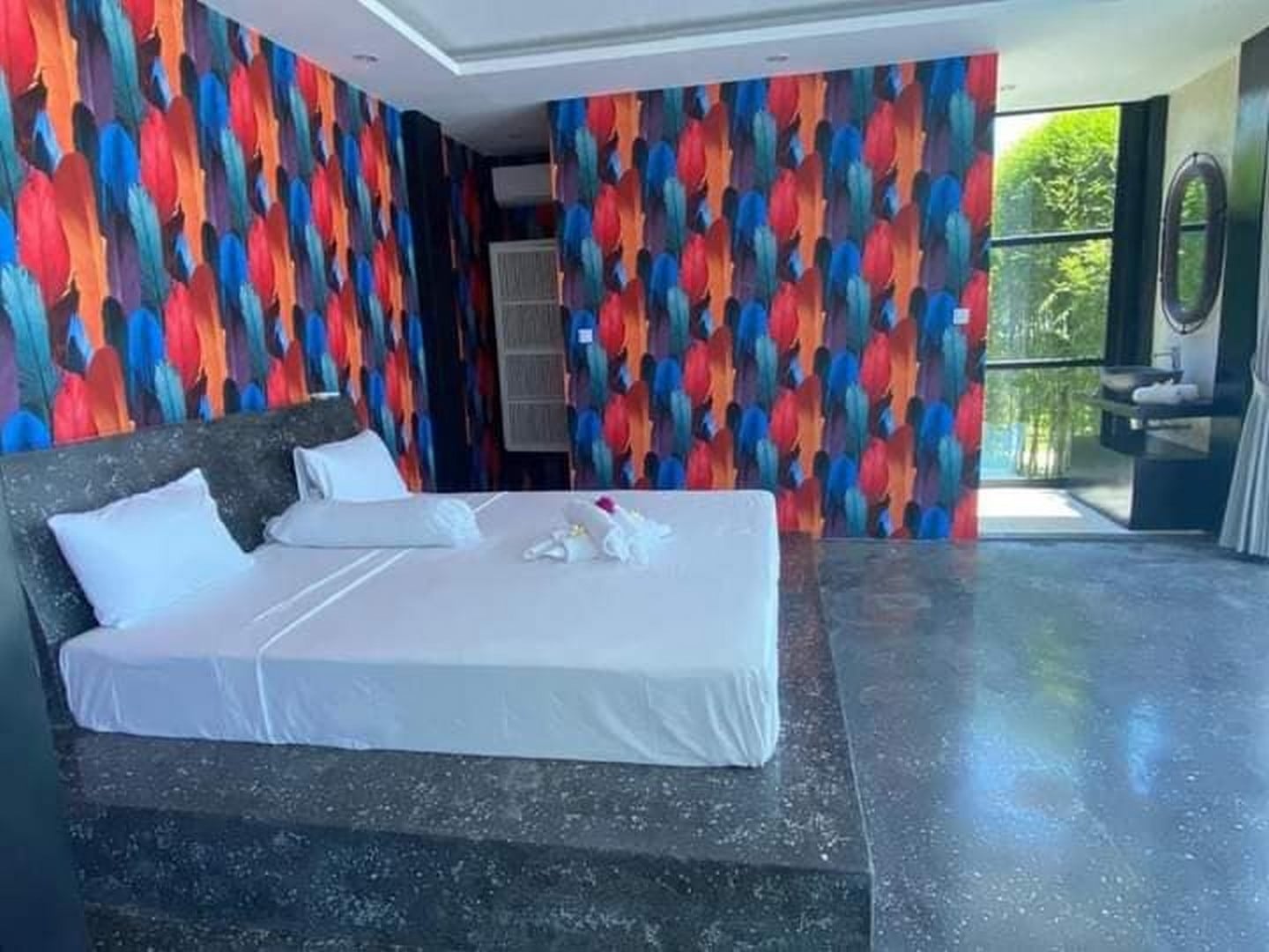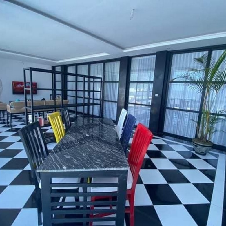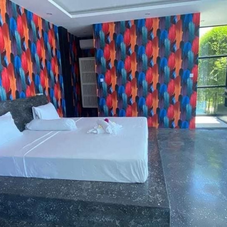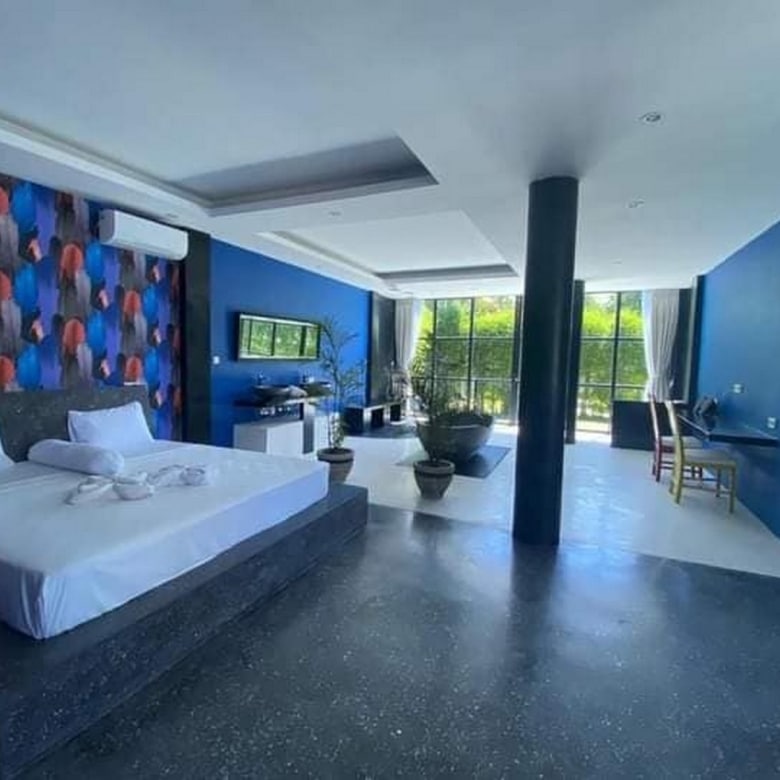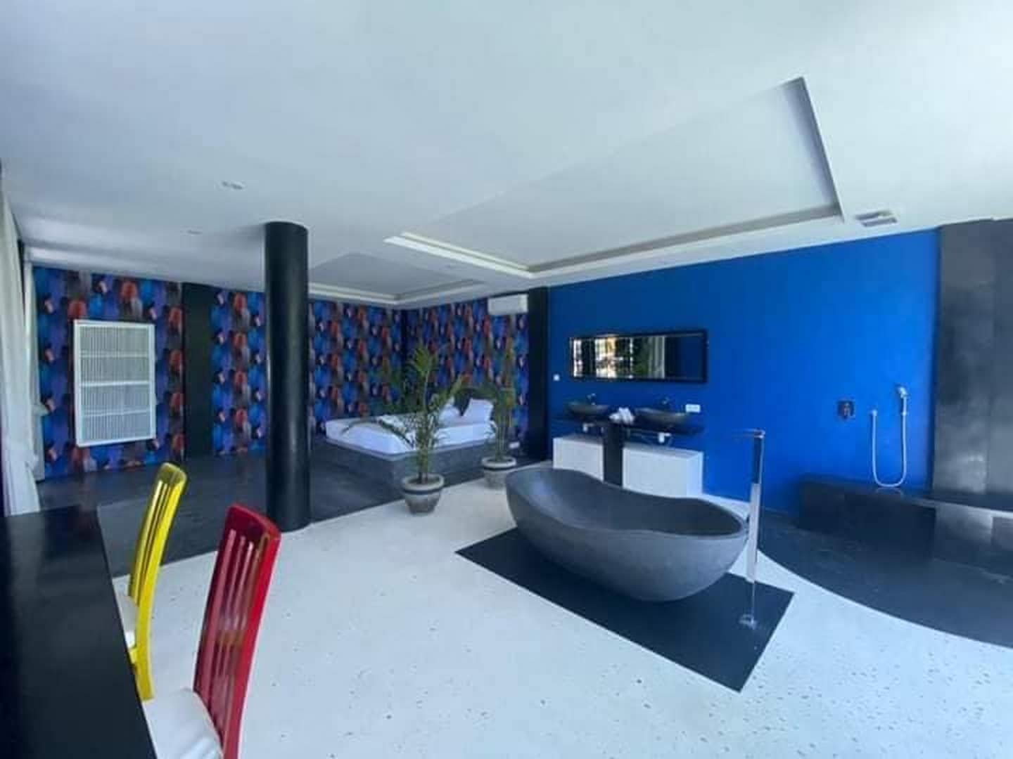Occupying 1050 sqm of land, with a building size of 200 sqm, this single storey property with its huge rooftop terrace is unique and has very modern aesthetics. Recently built in 2023, it features 3 bedrooms with ensuite bathrooms, enclosed living/dining area that opens up to views of the large 100 sqm swimming pool and lush garden, fully equipped kitchen and parking for a car. Access is easy from a 3 metre concrete road. The property comes fully furnished.