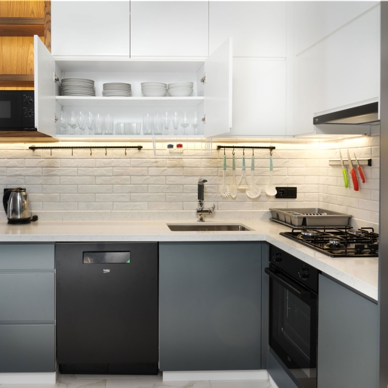 Living Room & Kitchen:An open-plan layout connects the living area with the kitchen, creating a sociable environment for everyday life.