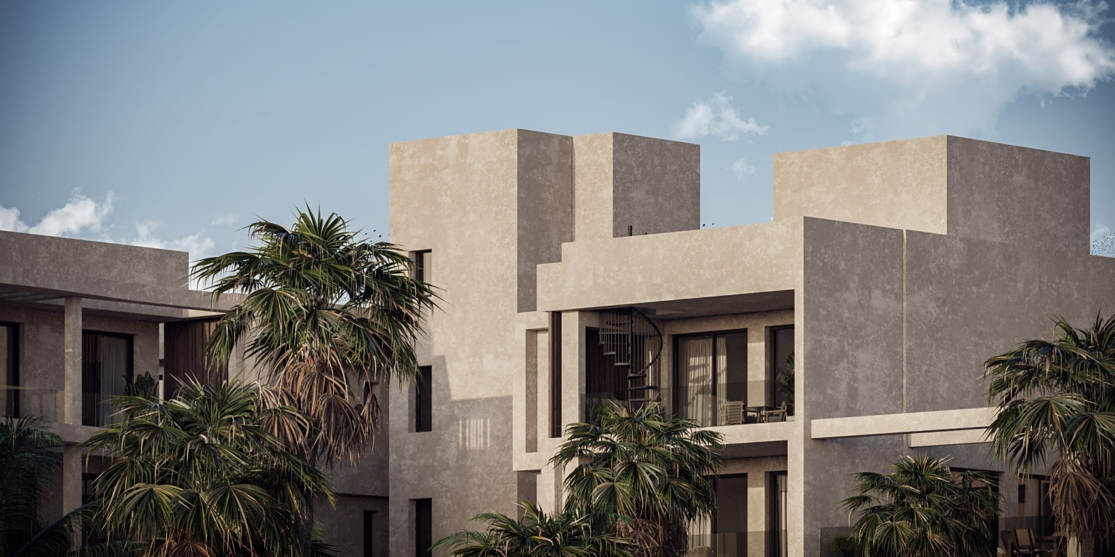 The Apartments are located in Protaras, in close proximity to the city of Paralimni, but also very close to the Kapparis area. One of the most popular regions of Protaras that is active throughout the year, providing dozens of amenities and entertainment options. The project is on a hill offering unobstructed sea views of Famagusta and Kapparis. The project consist of six blocks of apartments which provide a sense of privacy, comprising of 64 apartments with sea views or views of the communal swimming pool. They also include penthouses with a private pool and apartments with a private garden. Built in such a way as to convey the sense of a summer resort, the apartments stand out for their bohemian minimalist flair, their clear-cut lines and the quality of materials. It’s a project that accentuates design, while satisfying all contemporary lifestyle needs. The spacious common areas give a sense of openness to the residents, thus making it not only a holiday haven, but also the ideal permanent residence. Located between Paralimni and Kapparis, it gives the advantage to each resident to enjoy the magical sea view throughout the year. Apart from that, it offers quick access to the amenities located in the city of Paralimni, while being only a few minutes away from some of the finest beaches in Cyprus, located in Protaras