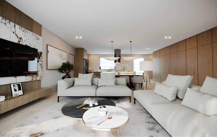 This residential development offers a selection of modern two-bedroom, two-bathroom apartments designed for comfortable living, located in Aradippou, Larnaca.The apartment features a spacious open-plan living and dining area, creating a bright and welcoming atmosphere. The contemporary kitchen is fully equipped with high-quality appliances and ample storage. Both bedrooms are generously sized, with built-in wardrobes for convenience, and the two bathrooms are designed with premium fixtures. High-quality materials and attention to detail are evident throughout, providing a stylish and functional living space. The complex also offers secure parking and well-maintained communal areas. With easy access to local amenities and major roads, it offers a peaceful yet accessible living environment in Aradippou.