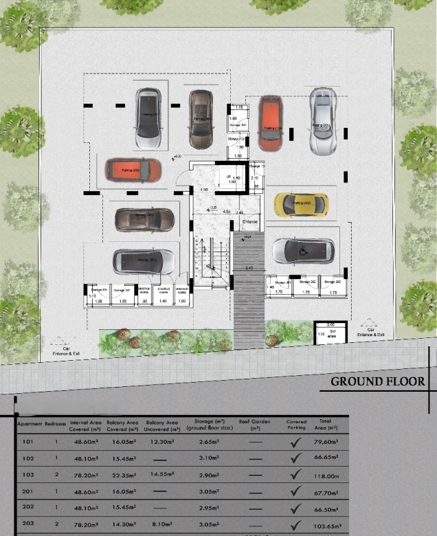 Introducing a stunning new development in the highly sought-after high-end area of Aradippou, where modern luxury meets ultimate convenience. This project is strategically located close to all amenities, with easy access to the main highway and Larnaca city, offering an ideal blend of accessibility and sophistication.This spacious 2-bedroom, 2-bathroom apartment is meticulously designed to offer comfort and functionality. It features a 78 sqm covered area, a generous 14.5 sqm covered veranda perfect for outdoor lounging or dining, and an additional 8 sqm uncovered veranda for an enhanced sense of space. The apartment also includes a 3 sqm storage room, ensuring your living area remains clutter-free. The total area amounts to a substantial 103 sqm, providing plenty of room to suit your needs.Expected to be delivered by June 2026, this project presents a fantastic opportunity to invest in a modern home or rental property in one of Aradippou’s most prestigious neighborhoods.Perfect for families, professionals, or investors seeking a stylish and well-connected residence.