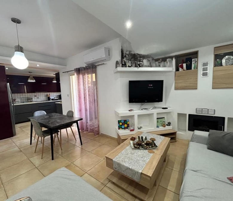 Move right into this beautifully furnished 3-room apartment in the heart of Kiti, equipped with modern, nearly new electrical appliances and stylish furniture. Cozy up by the indoor fireplace, relax on the covered patio, and enjoy the elegant ambiance with hidden lighting and tasteful drywall accents.Located just a 2-minute walk from all the essentials—kiosks, cafes, bakeries, shops, schools.
