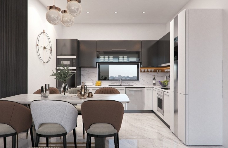 This two-bedroom apartment offers a seamless blend of modern design and functionality, featuring spacious layouts, floor-to-ceiling windows, and high-quality finishing materials. The interiors are thoughtfully designed with large-format elegant tiles, built-in kitchens and wardrobes, and decorative false ceilings with subtle lighting for a refined ambiance. Bathrooms are equipped with electric towel rails, while the open-plan dining and living areas enhance the sense of space and comfort. Residents can also enjoy private balconies, creating a perfect extension of their living area, all within a secure, amenity-rich complex that sets a new standard for contemporary urban living.