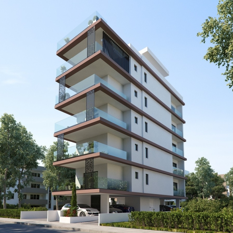 A boutique residential complex consisting of 5 whole-floor apartments located in the city center area just a few meters away from American Academy and 1 km from Finikoudes Beach. Each apartment offers 2 spacious bedrooms with ensuites and an open plan kitchen and living room along with a guest toilet offering a comfortable living for each resident with the utmost privacy. Each floor has 88 square meters of covered areas and 2 additional covered verandas of 25 square meters. The top floor apartment on the fifth floor offers an additional rooftop area on a surface of 60 square meters that is solely owned by apartment 501. The lovely residential neighborhood is quiet and family orientated surrounded by large luxury houses and residential properties.