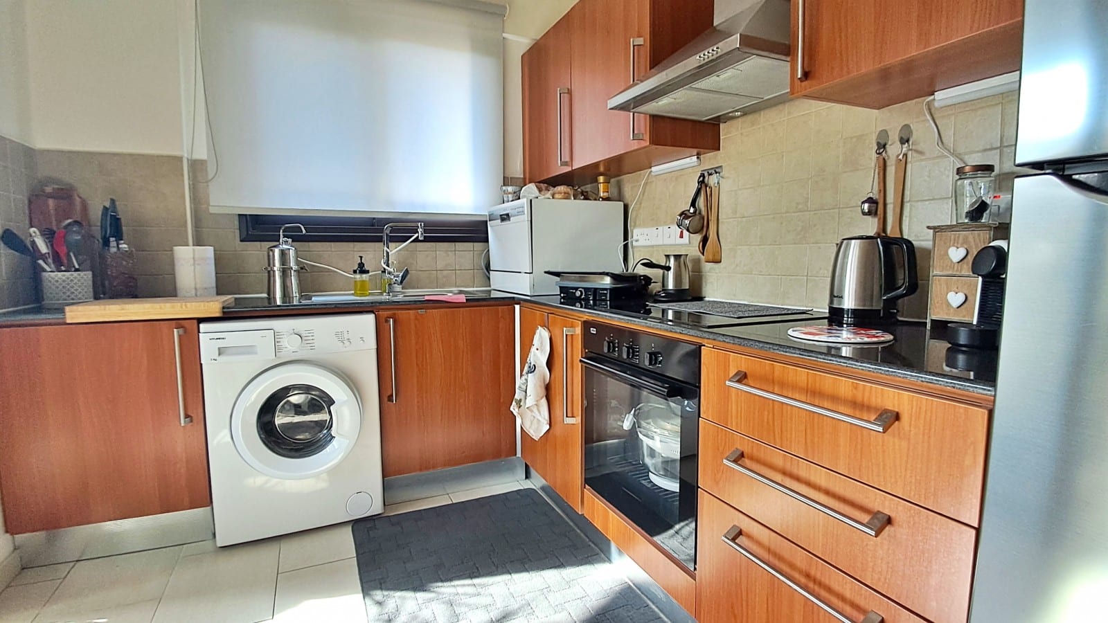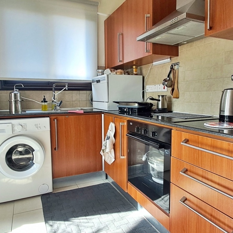 A beautiful 2-bedroom apartment in Tersefanou, set in a peaceful location ideal for relaxation and comfort. Designed with an open-plan layout, the living and dining areas maximize space, while the kitchen is thoughtfully positioned to create a sense of separation. The apartment features two well-sized bedrooms with ample wardrobe storage, including a master bedroom with an en-suite bathroom, along with a spacious family bathroom.The large balcony overlooks the lush green surroundings and the complex’s pool area, providing a comfortable outdoor space perfect for summer barbecues and relaxation. Conveniently located just a 10-minute drive from the beach and only a few minutes from local shops and schools, this property is an excellent choice for those seeking a tranquil lifestyle with easy access to amenities.