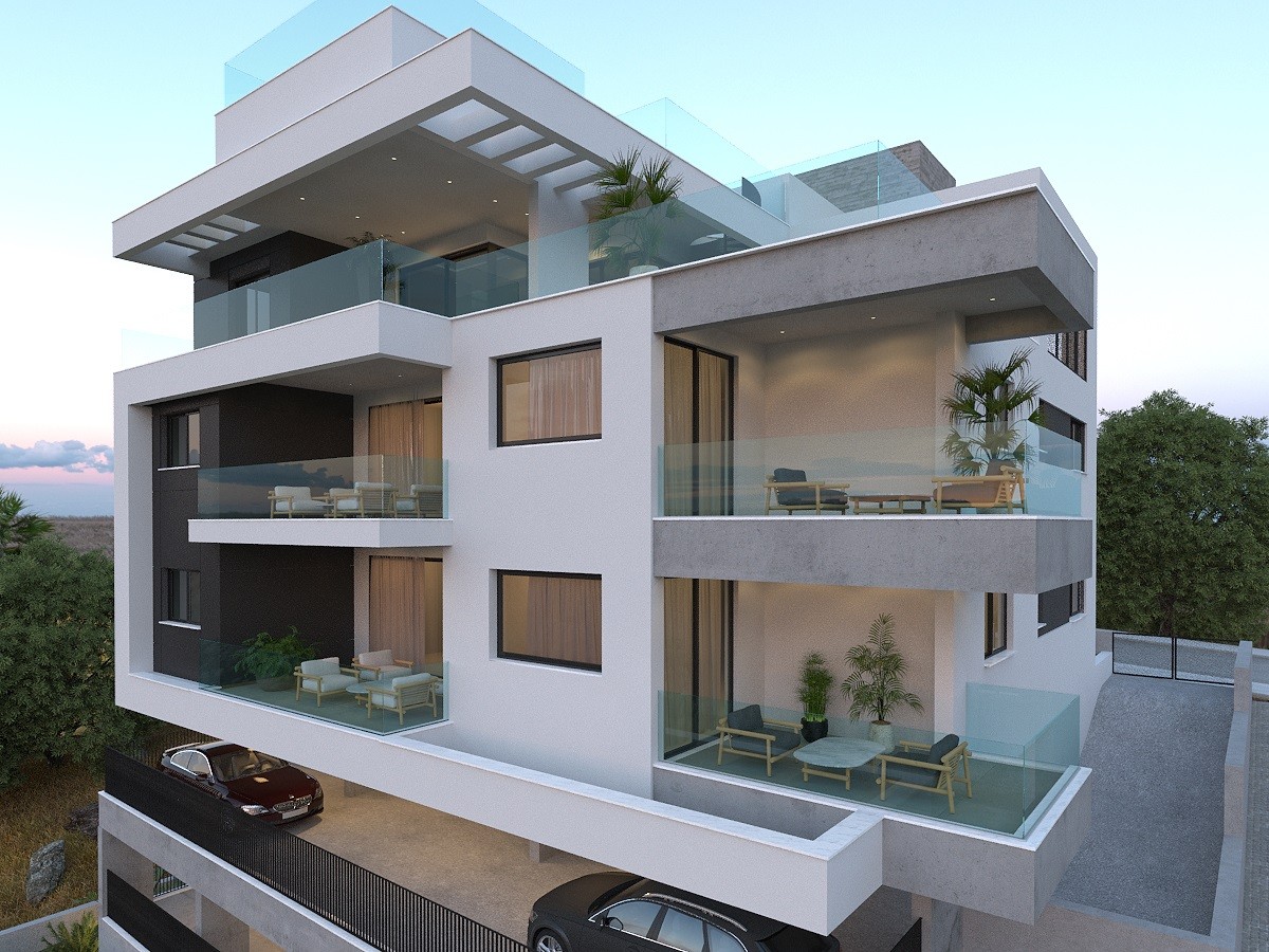This project is located in Agia Phyla area, in Limassol. It has sea-view from all apartments. It consists of only 5 luxurious modern apartments (2 of 2-bedroom, 2 of 3-bedroom and 1 of 3-bedroom penthouse with roof garden), each with covered parking. The small size of the building gives to the residence a unique feeling of exclusively and security.