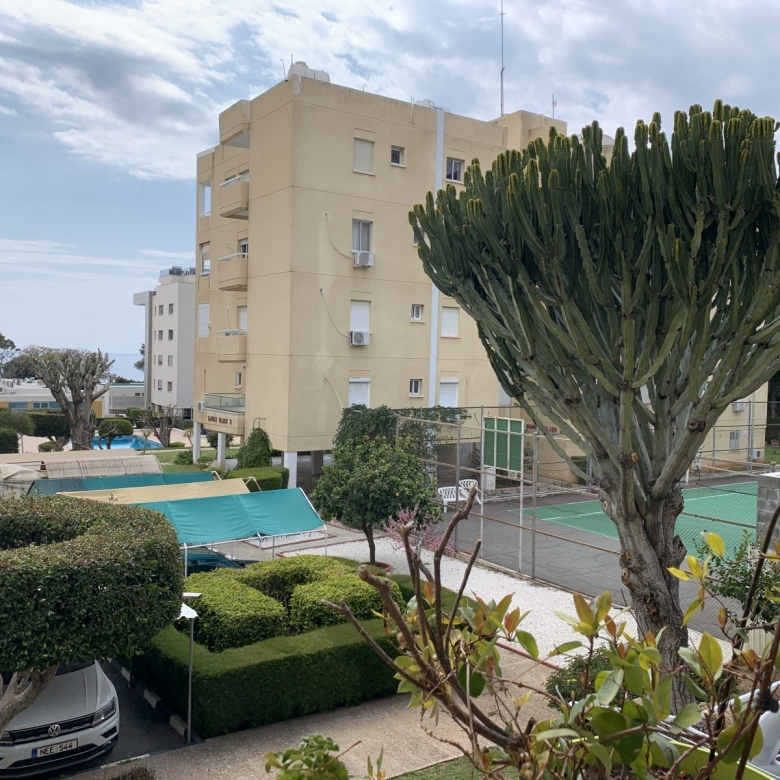 It is located on the first floor and has a partial sea view. The complex has a swimming pool, tennis court and well-kept garden.