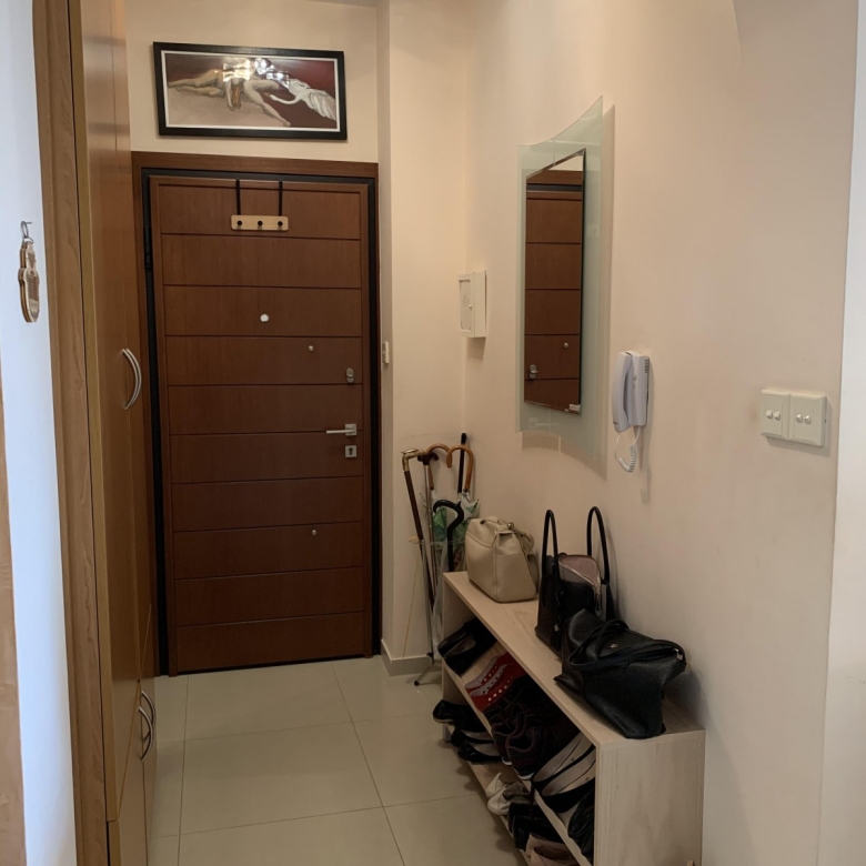 The layout of the apartment is as follows, a living room combined with an equipped kitchen, from the side of the living room there is a veranda overlooking the sea and the courtyard of the complex, the master bedroom has its own bathroom with a shower, the other two bedrooms share a common bathroom, the kitchen has a small glazed balcony.