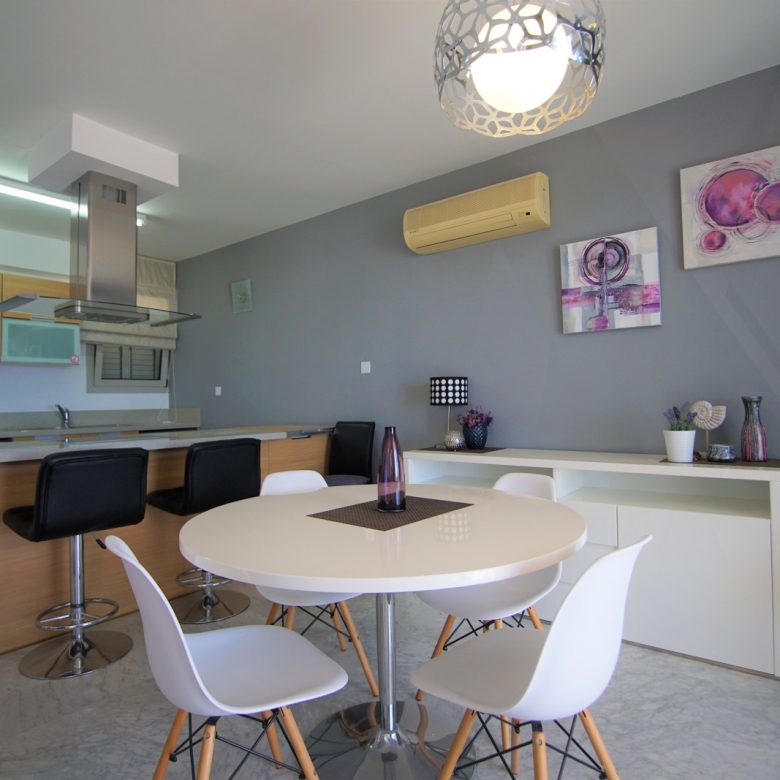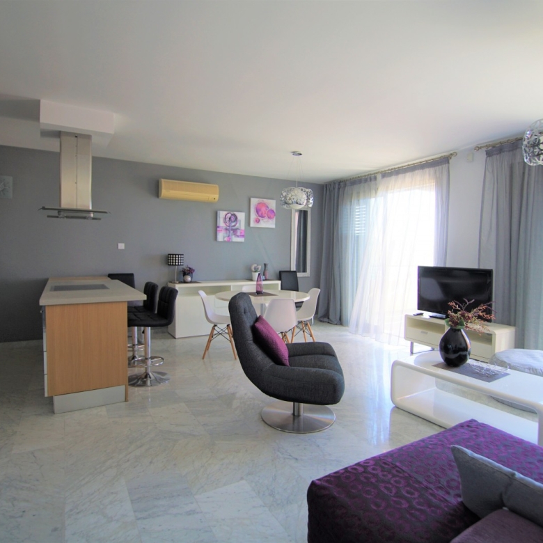 Exceptional 2 bedroom apartment on the top floor which originally has been provided as a penthouse offers magnificent views of Saint Raphael Marina, sparkle Mediterranean sea from heights of Amathusa. Bright and well positioned apartment has both mountains and sea view as well as sun lighted rooms which gives a warmth and cozy living. Apartment comprises of 82 sqm inner area and uncovered veranda of 25 sqm to enjoy the gather with amazing views of surroundings. Being just within a minute of walk tot he beach, restaurants and 5* hotels this property is a great investment for the home to be !!!