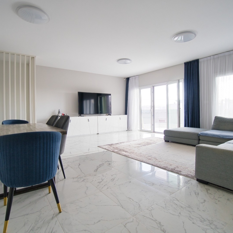 This exquisite 4-bedroom duplex offers an unmatched blend of luxury, comfort, and convenience, making it an ideal choice for those seeking a high-end living experience as well as a promising investment opportunity. Situated just 300 meters from the sea, within a secure, gated community enhanced by video surveillance, it promises privacy and peace of mind in a serene setting. The duplex itself is a haven of sophistication and style, featuring heated floors in every room and bathroom, mosquito nets and shutters.