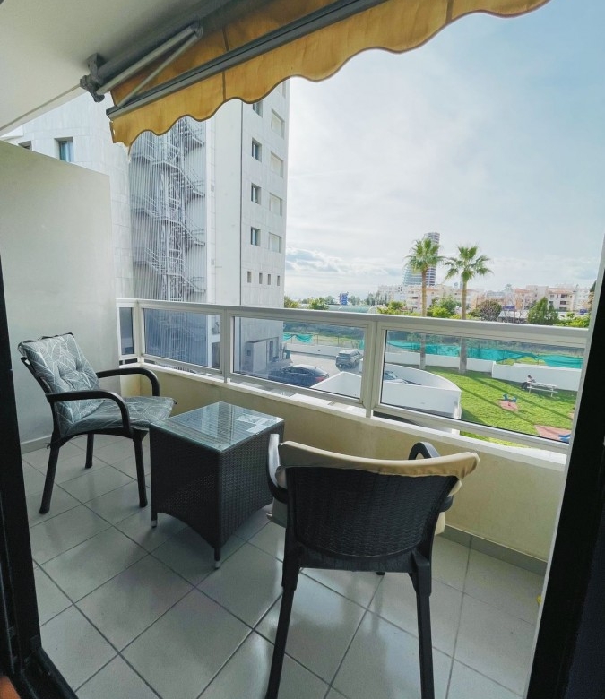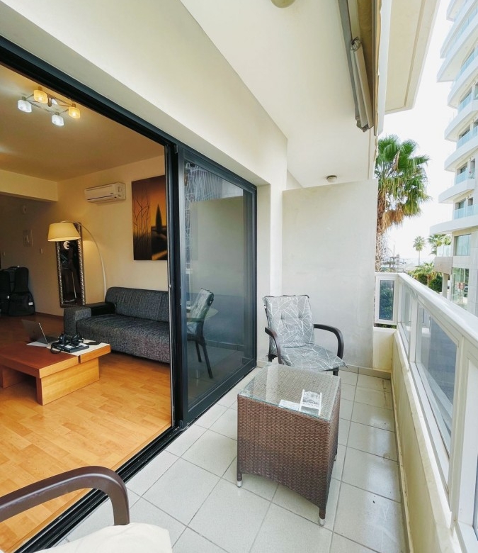 A two-bedroom apartment is available for sale in the popular tourist area of Agios Tychonas, just across the road from the sea. Situated within a residential complex consisting of several buildings, the apartment benefits from a prime location with convenient access to all essential amenities, including 24-hour Sigma bakery, Metro and Lidl supermarkets, pharmacies, restaurants, bars, the Ritz Carlton hotel, and a cinema. The area offers excellent transport links, with easy access to the highway and nearby bus stops. Located on the second floor, the apartment features two bedrooms with built-in wardrobes, an open-plan kitchen, a living room with access to a veranda offering partial sea views, a bathroom, and a guest toilet. It is fully furnished, equipped with household appliances, air conditioning in all rooms, laminated parquet flooring, and the building is equipped with an elevator and parking. The property has a title deed.