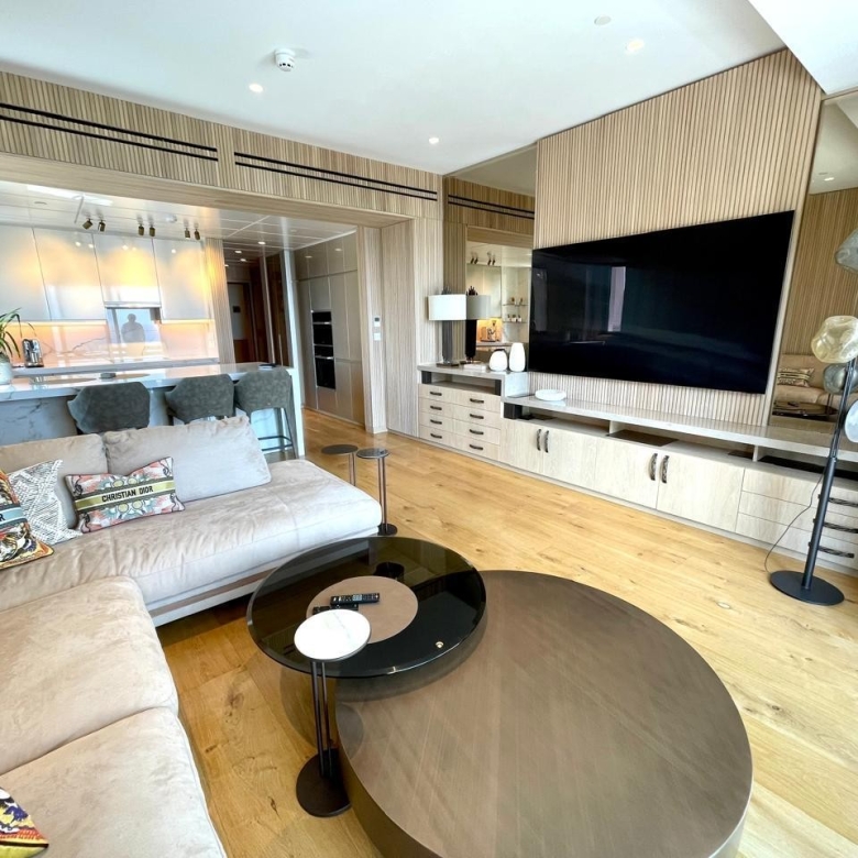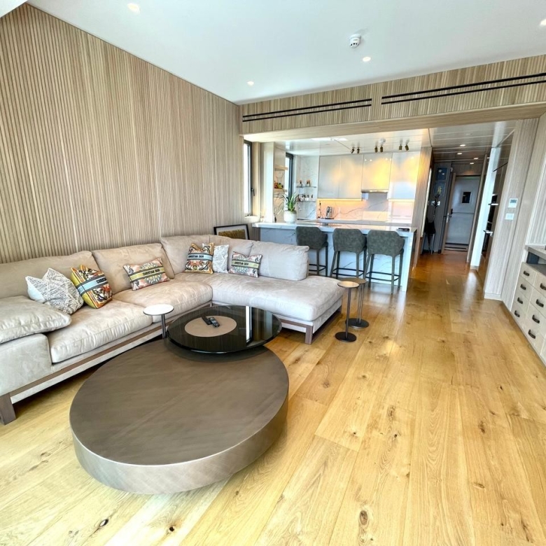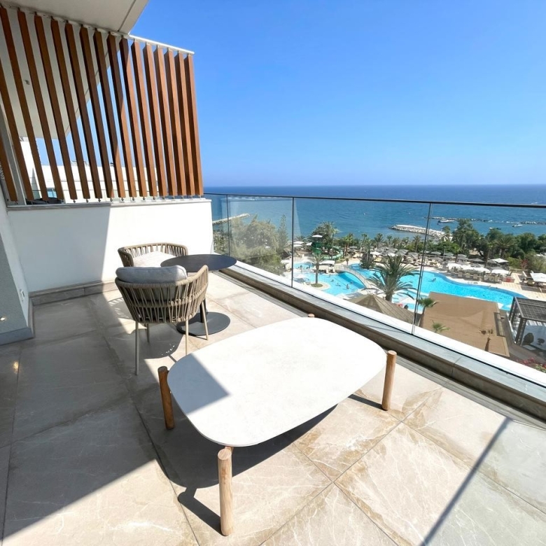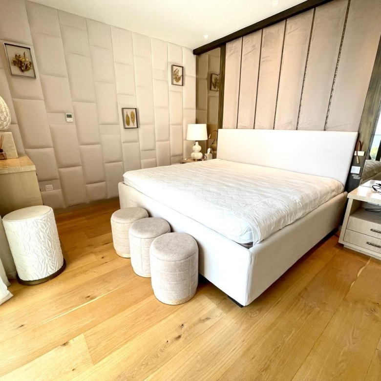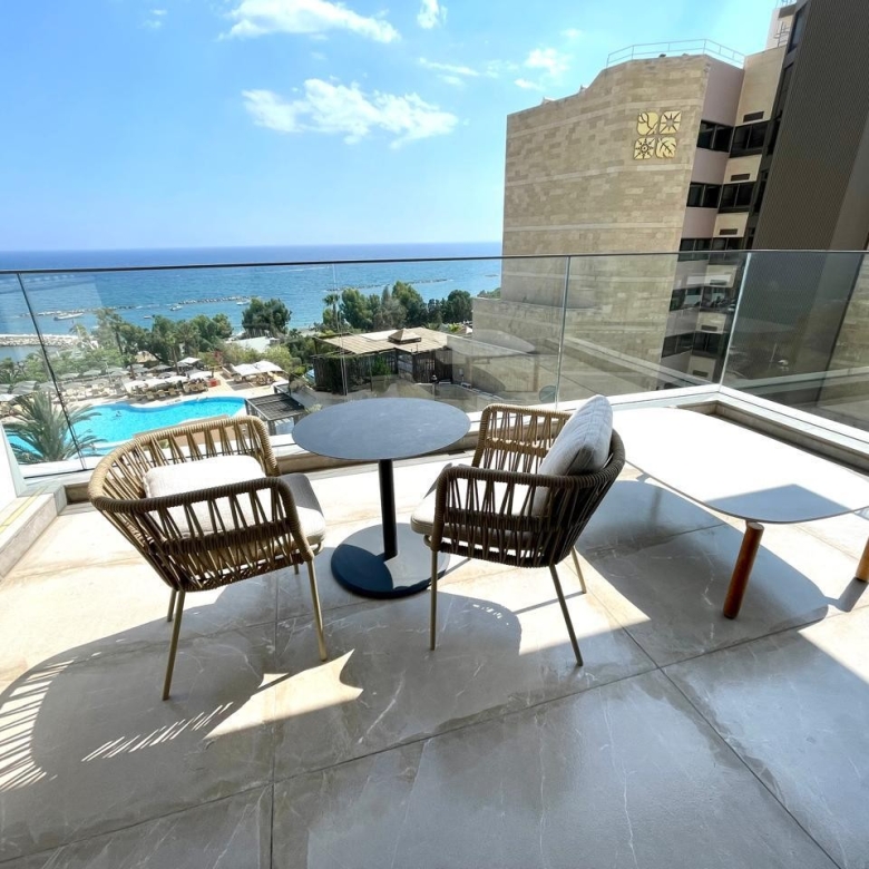 Exquisitely designed, it combines premium aesthetics with elevated comfort and functionality. Large, floor-to-ceiling windows allow an abundance of natural light to stream in, with the azure blue waters of the Mediterranean acting as a picture-perfect backdrop against the warm elements of the interiors.