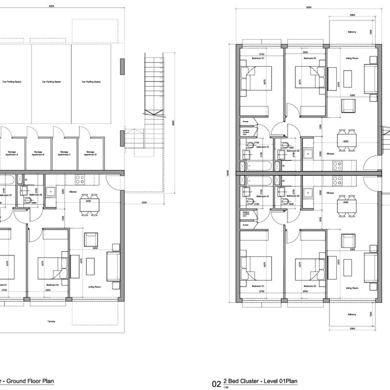 The gated development comprises 13 three-story clusters, offering 8 one-bedroom and 44 two-bedroom apartments, alongside a clubhouse of 75m² with a communal swimming pool, a private road with off-street parking, and private gardens along the public green area. The majority of the apartments are two-bedroom units distributed across 11 clusters, with the remaining 2 clusters dedicated to one-bedroom apartments.