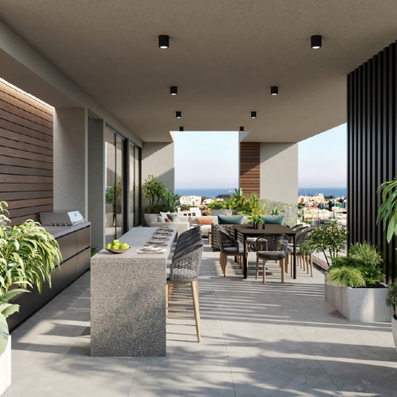 Residential development, combining a block of 6 apartments, located in a quiet family area called Agios Athanasios. Penthouses with two bedrooms on the 3rd floor, each of which has a spacious roof garden and panoramic views of the Limassol are 360 degrees. This outstanding architectural project has been designed to provide its residents with contemporary style, privacy and comfort. The open-plan living spaces, which extend onto large open terraces and floor-to-ceiling windows.