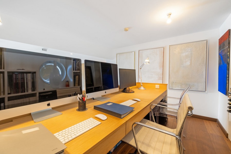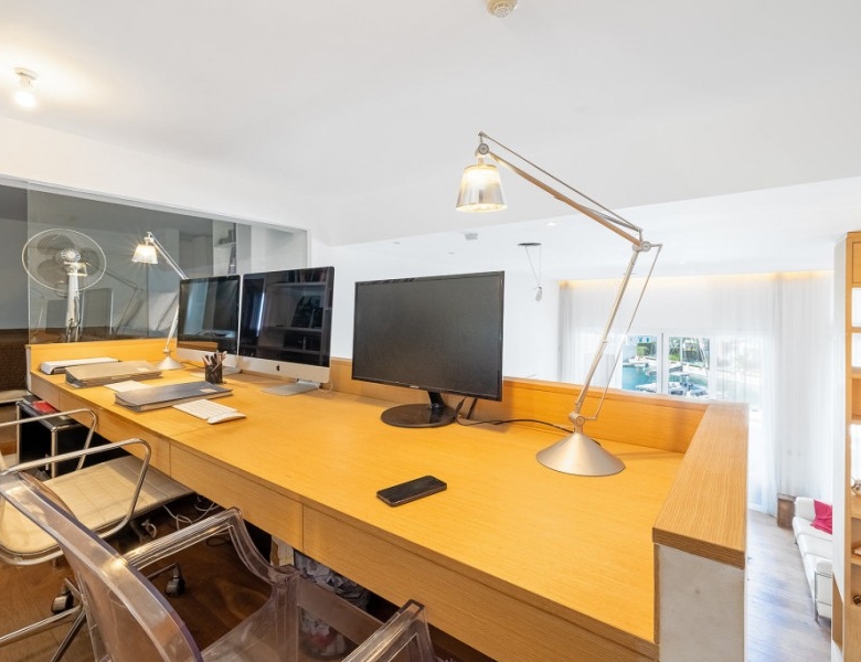 Situated in Limassol Marina, this modern duplex apartment has been fully redesigned to maximize space, focusing on its impressive 4.40-meter ceiling height. The renovation aimed to create an open and well-lit atmosphere. The living room is spacious and bright, connecting seamlessly to a covered veranda that offers views of the turquoise waters of Limassol Marina. The integrated kitchen shares its space with the living area and extends to a well-planned mezzanine level, currently used as an office and an additional bedroom. The apartment comprises two main bedrooms: a master bedroom with a walk-in wardrobe and en-suite and a guest bedroom with an adjacent family bathroom. Convenient amenities include underground parking and a utility room. The building offers a quiet and secure environment and low communal expenses. Limassol Marina is one of Limassol’s most desirable and popular hot spots with its stylish shops, restaurants and cafes, SPA and wellness centre, resident facilities, and services. The residents will enjoy the comfort of an elegant residential property, the status of living in a prestigious location, and a full concierge service of the marina in the heart of Limassol