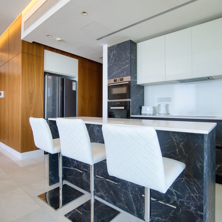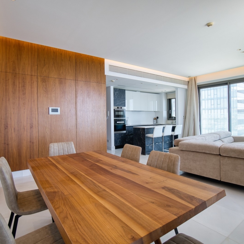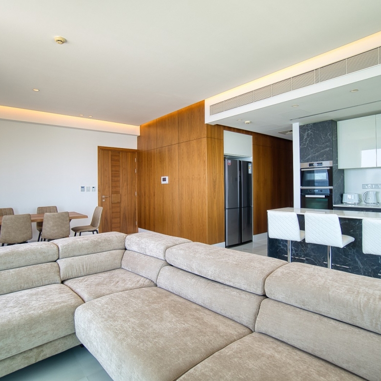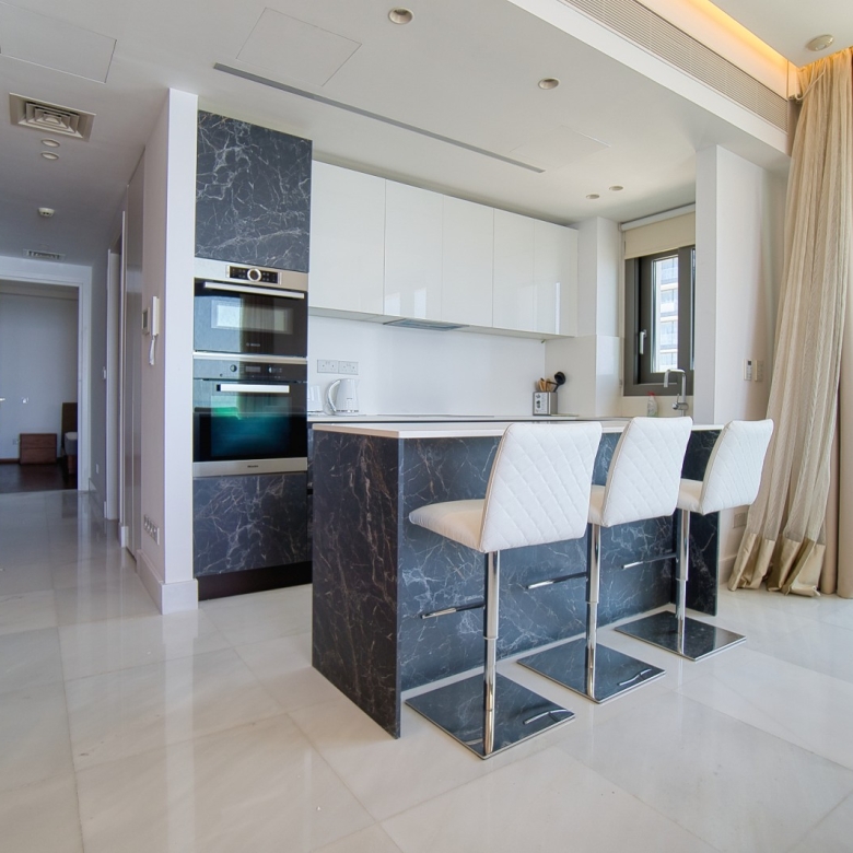 Modern two generously sized bedrooms, each designed to provide maximum comfort and tranquility. Stylish, modern bathrooms with high-end fixtures and fittings. A bright and airy open-plan living and dining area, perfect for entertaining guests or relaxing with family. A state-of-the-art kitchen equipped with premium appliances, sleek cabinetry, and ample counter space. Enjoy breathtaking views and fresh sea breeze from the spacious private balcony. Luxury modern finishes throughout the apartment, including marble countertops, hardwood flooring, and designer lighting. Access to exclusive amenities such as a swimming pool, fitness center, secure parking and business center. Located on the front line, offering easy access to the beach, local shops, fine dining restaurants, and vibrant nightlife. Experience the ultimate in luxury living with this exquisite apartment. Perfect for those who seek the finest in comfort and style in one of the most desirable locations.