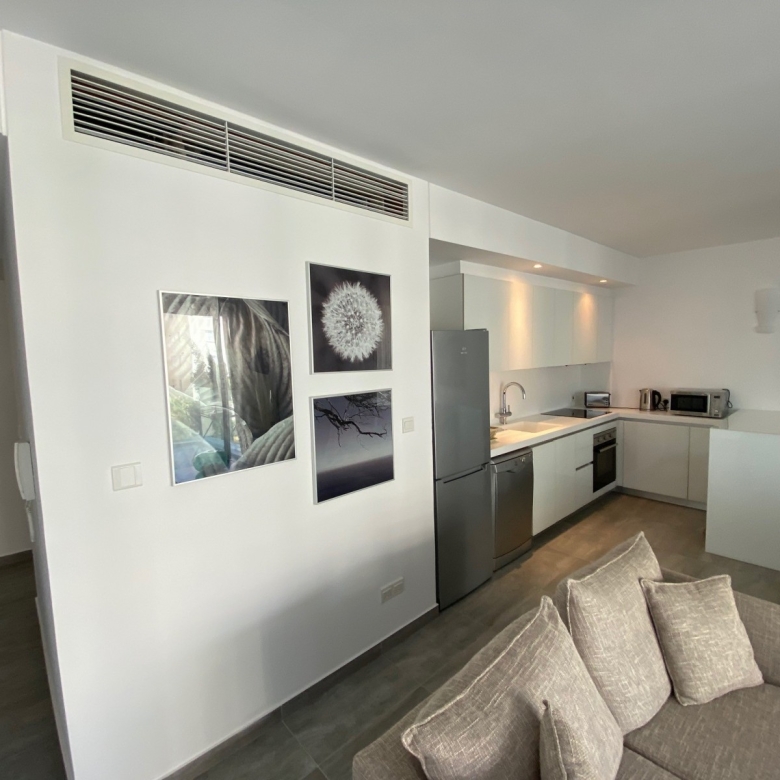 This stylish apartment consist of a spacious open plan living and dining areas and a kitchen. Patio doors of the lounge area lead out to large covered balcony. This luxury apartment also features 2 large bedrooms with fitted wardrobes and a family bathroom. The Master bedroom has en-suite facilities. The property is fully furnished.