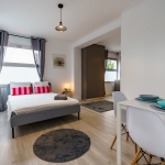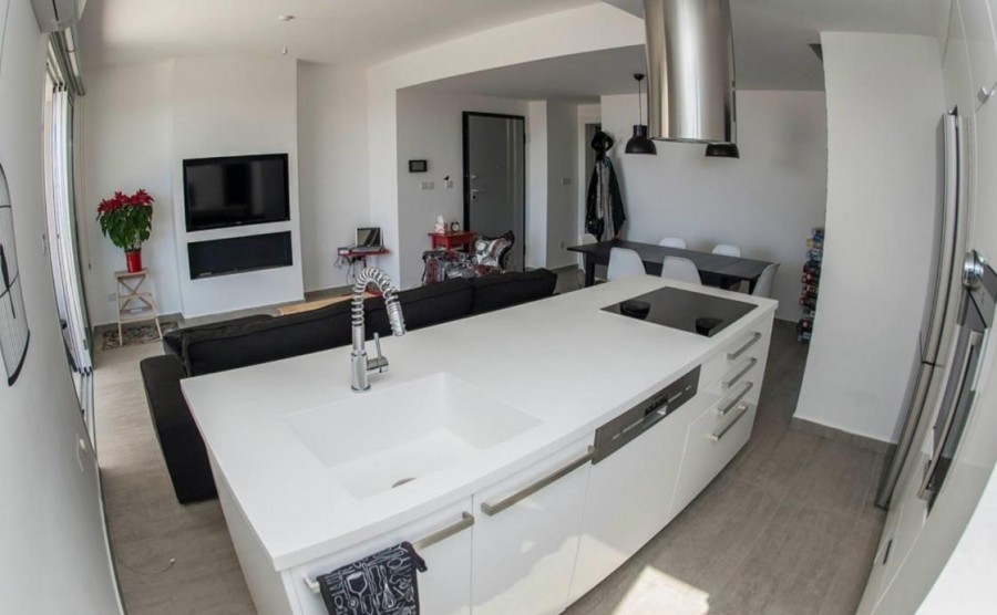 Sale of 2 bedrooms apartment in Panthea, Limassol. The building is situated in a quiet place with easy access to the highway. The apartment is situated on the second floor and consists of open plan kitchen and living area, 2 bedrooms and 2 bathrooms. There are also covered parking and storage room.