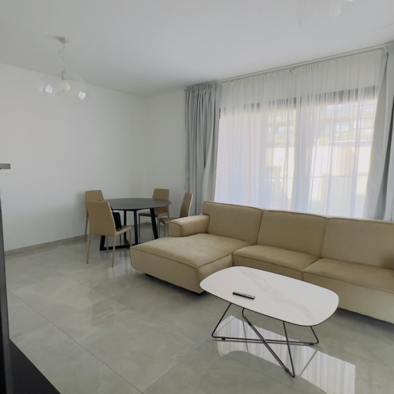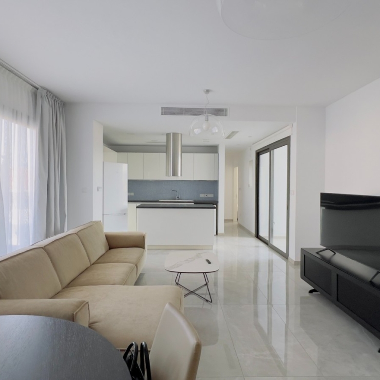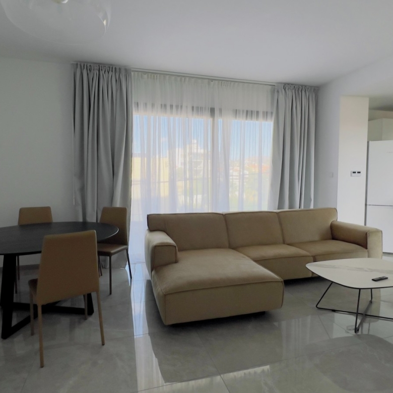 The stunning, fully furnished 2-bedroom apartment is located in a gated complex on the 2nd floor, in a popular area of Potamos Germasogeia, 600m from Dasoudi Beach and Park, in a very quiet and peaceful neighborhood. The covered area is 121.1 sq.m including a covered veranda. The apartment consists of an open-plan kitchen connected to the living room, 2 bedrooms, 2 bathrooms. There are built-in wardrobes, luxury finishes, double-glazed windows, a fully equipped kitchen with appliances, an air conditioning system (VRV in the living room and split units Gree in the bedrooms), solar panels for hot water, underfloor heating (electrical), covered parking, and storage room. The complex comprises a common swimming pool and fitness area.