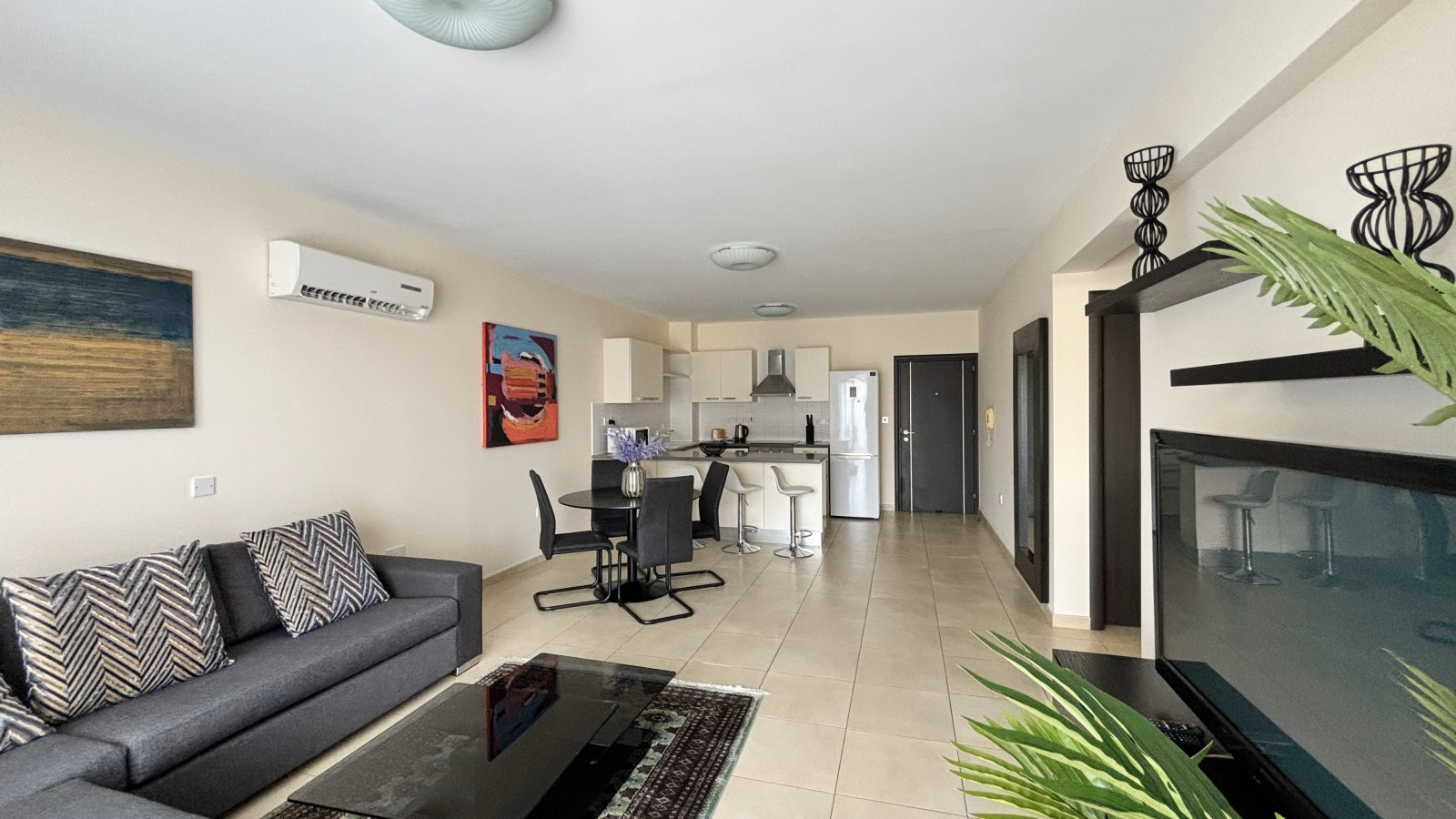 Located in the prestigious Potamos Yermasoyias area this beautiful 2-bedroom, 2-bathroom flat offers 85 m² of covered space and a 6 m² covered veranda, complete with high-end furnishings and modern amenities. It features air-conditionin, and solar panels for maximum comfort and efficiency.