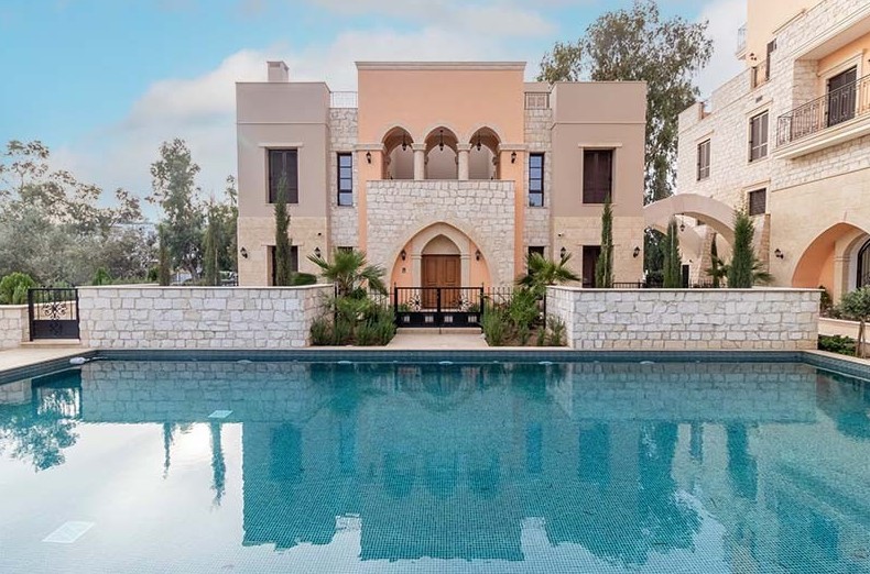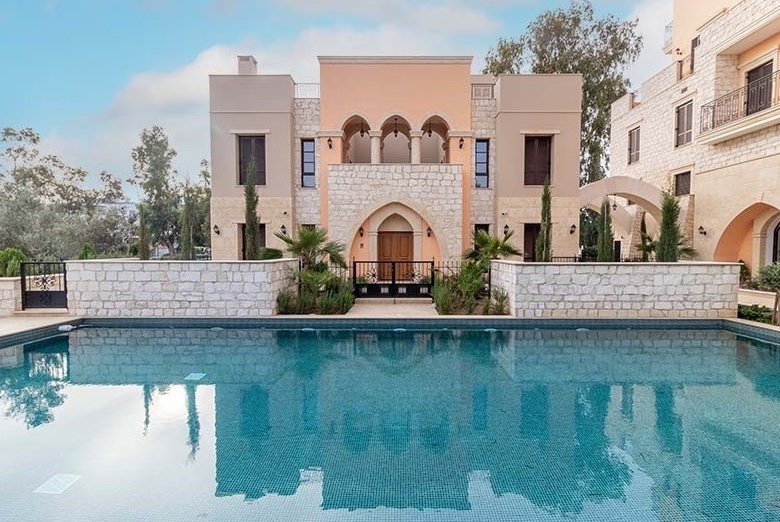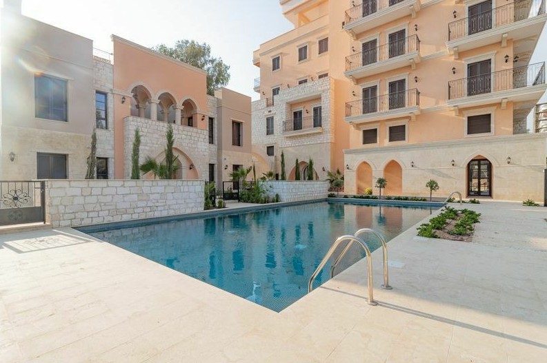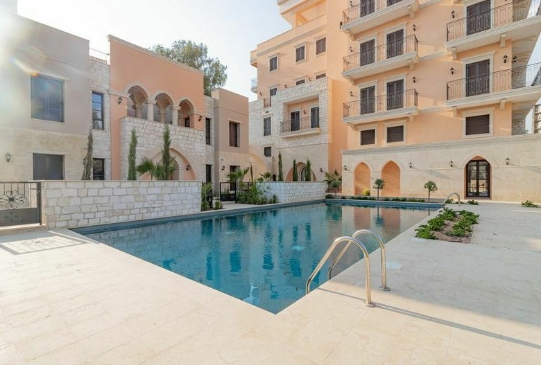 The building complex consists of a block of just 5 apartments (three 3-bedroom apartments, one 3-bedroom duplex and the 4-level penthouse with 4 bedrooms and a guest room. The units are connected by columned arches with stonework. In the center of the complex, there is a large swimming pool finished with mosaics. The large area of the plot accommodates, apart from the swimming pool, a spacious recreational area with landscaped garden.