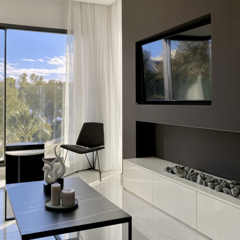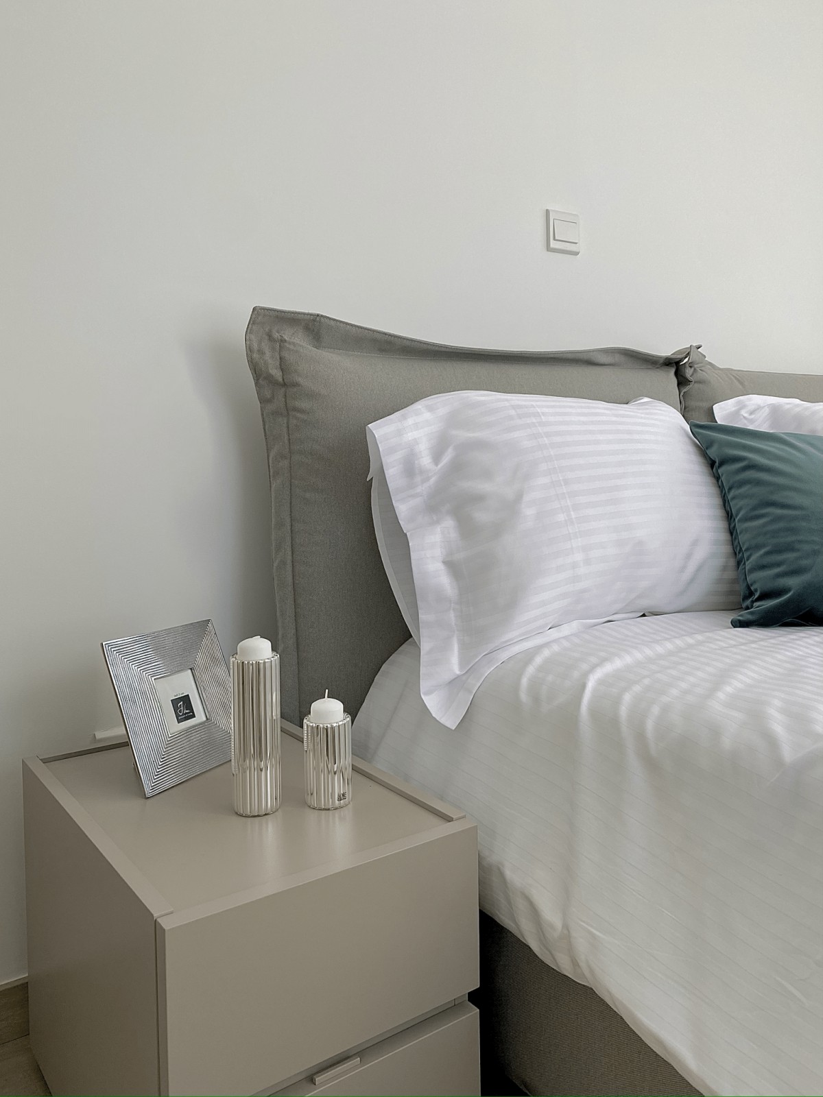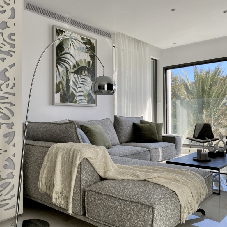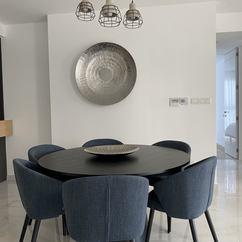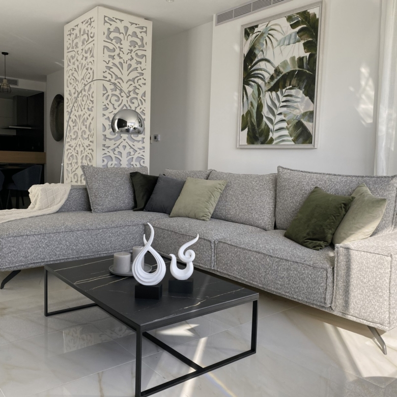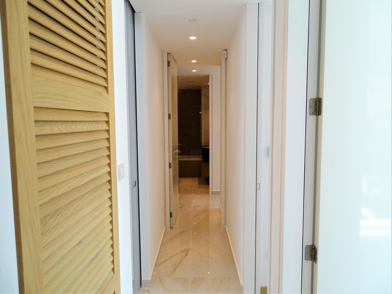 Modern 3 bedroom apartment front line has been completely transformed into a great living space equipped with the latest amenities and features such as solar panels for energy saving, walk-in closet, and built in closets. The open plan shared living space is fitted with a contemporary kitchen, that also encompasses the dining and living areas, it also features a home office space. The living room is fitted with seamless glass windows providing an unobstructed panoramic view. It boasts sweeping views overlooking the sea and beach with a corner view of a seasonal flowing river to the sea and is surrounded by landscaped gardens. The whole building has been renovated within 2021 year.