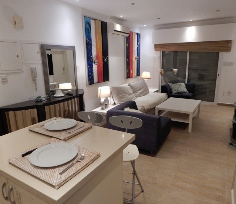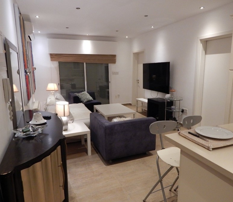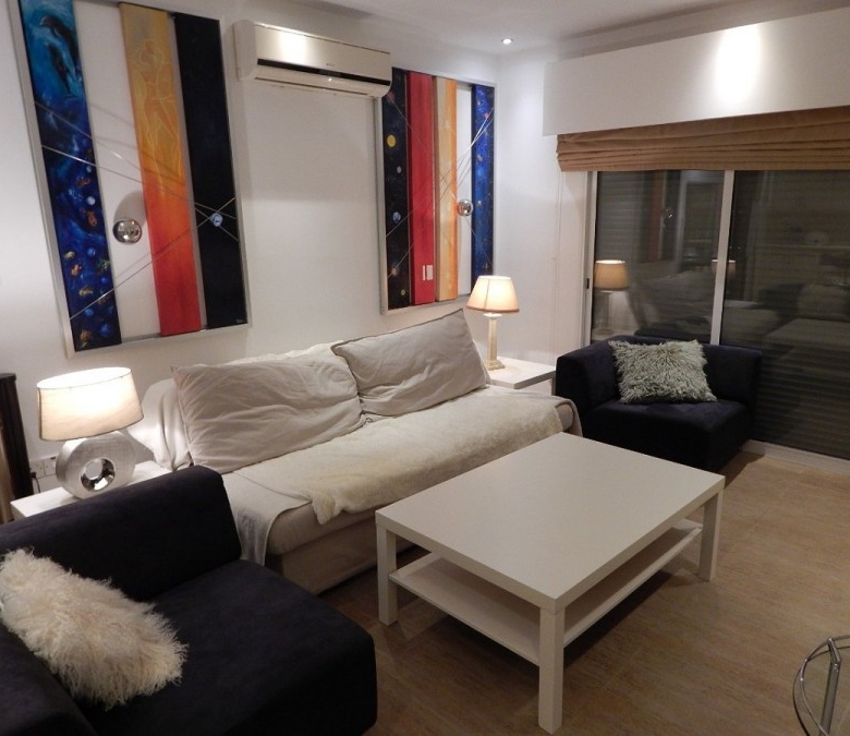 A spacious, homely two bedroom apartment in the very well known touristic area of Germasogeia in Limassol. Fully furnished and eqquipped, with modern features and very comfortable living space. The apartment is situated close to all amenities and within walking distance to the beach. It is located within a neighborhood square which the apartment is a part of , that contains a children’s park and two swimming pools. The square is guarded by security gates with advanced access card entrance and camera surveillance making it a vey safe and private environment.