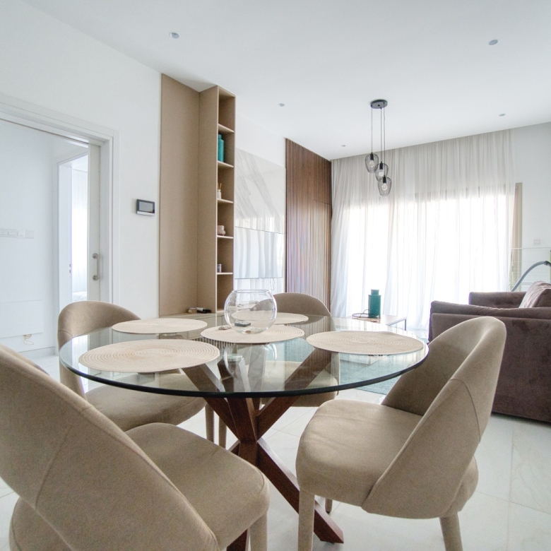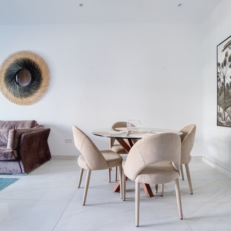 Situated in Germasogeia, a mere 3 kilometers from Limassol’s cosmopolitan city center and a stone’s throw away from the city’s stunning coastline, the spacious, modern residences are ideally situated for the best of both worlds. The building boasts luscious, landscaped gardens, and a well-lit exterior and fenced in areas for even greater privacy and safety. Upon entering the spacious entryway, elevators whisk residents to each of the three floors, where two and three bedroom apartments are available. With a total of only nine apartments, the complex fosters a sense of community and neighborliness amongst its residents. No VAT.