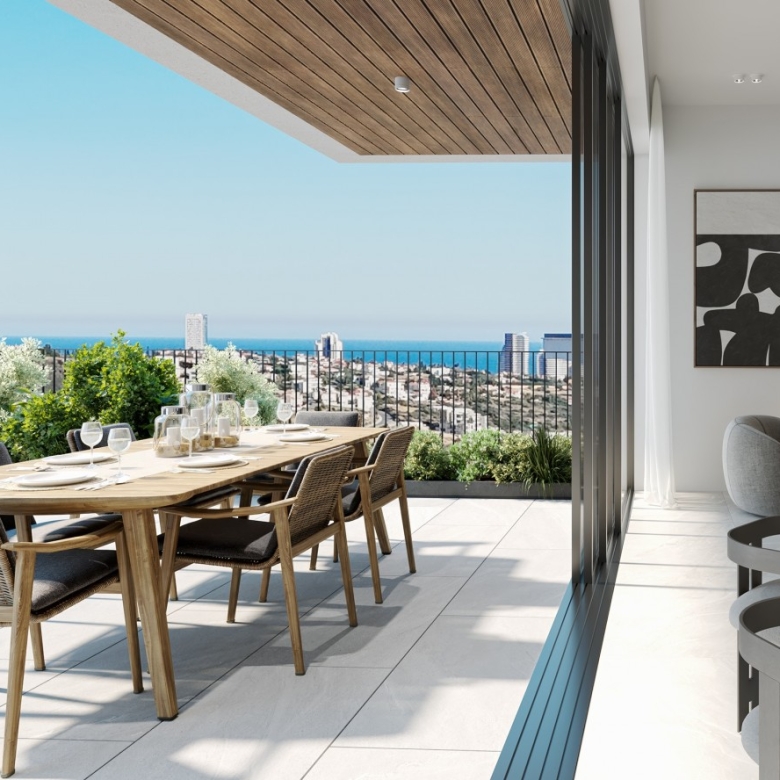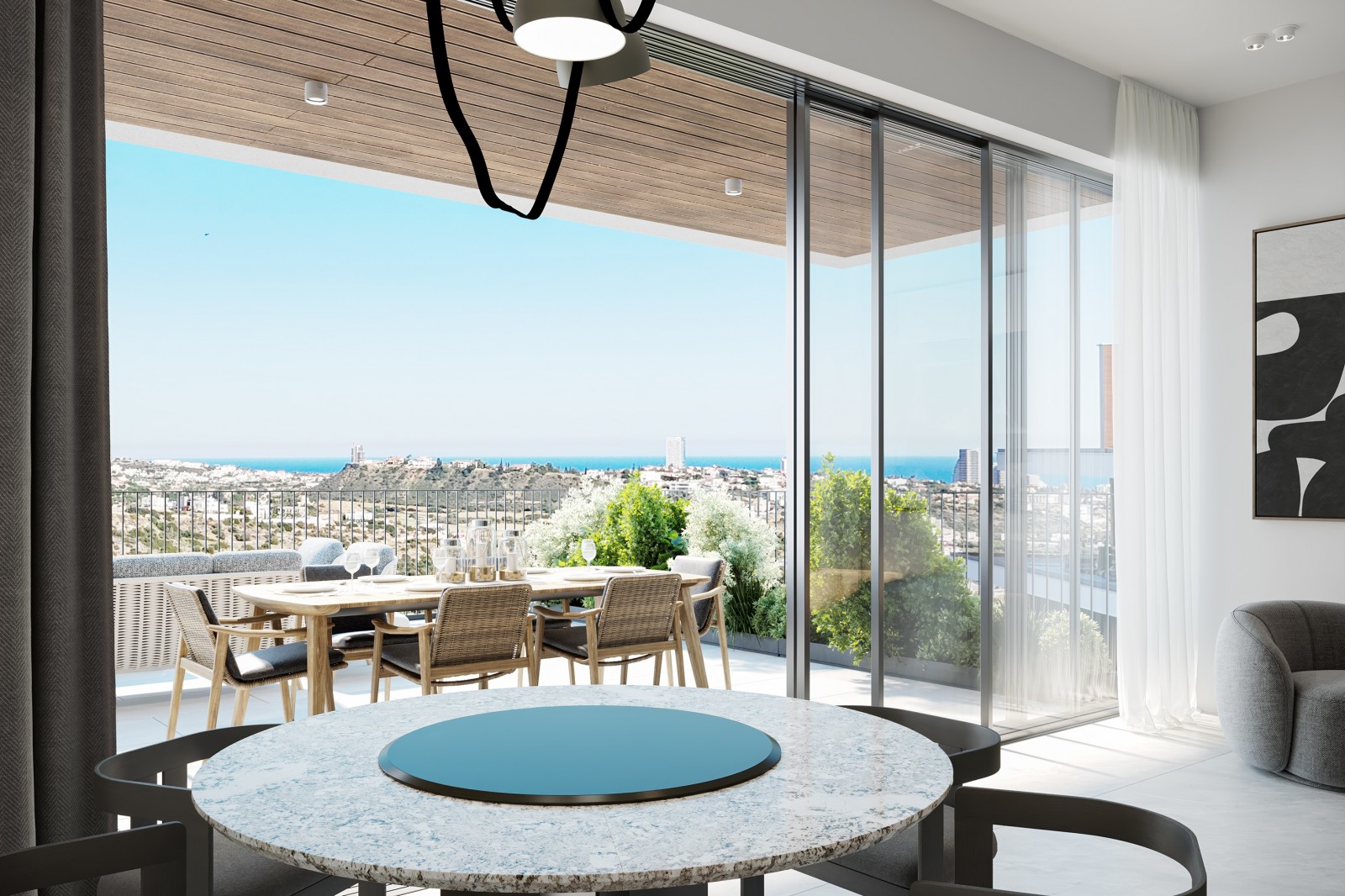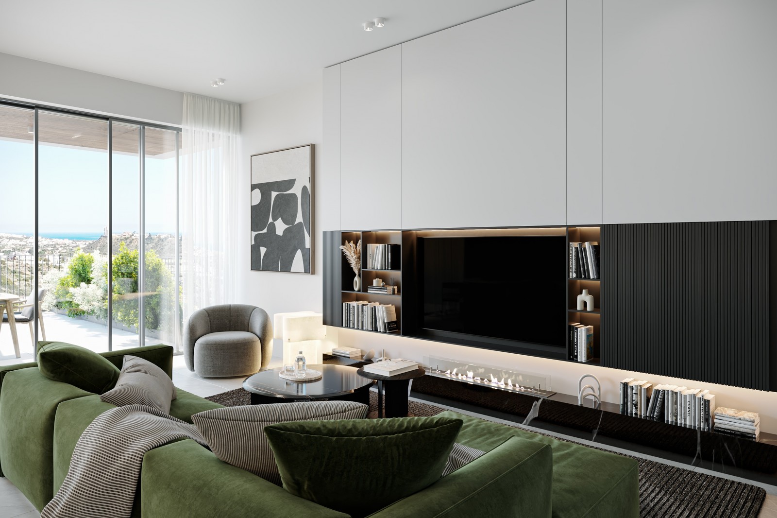 A premier hillside development located in Germasogeia, Limassol, offering breathtaking views of the city, sea, and surrounding green hills. This luxurious residential retreat combines the peace of hillside living with the convenience of city amenities, including bars, supermarkets, restaurants, gyms, and schools, all within easy reach. Residents enjoy a tranquil setting and a quick escape from the urban rush, while remaining close to Limassol’s lively center. The unique blend of natural beauty and urban vibrancy is reflected in the residence’s elegant design, featuring a striking contrast of white stone embellishments and deep grey wall cladding. Ensuring a lifestyle where luxury and convenience coexist in harmony. This unit has a garden area of 27 square meters and basement of 25 square meters. There is a choice to turn one part of the covered veranda into an extra room/bedroom and bathroom.