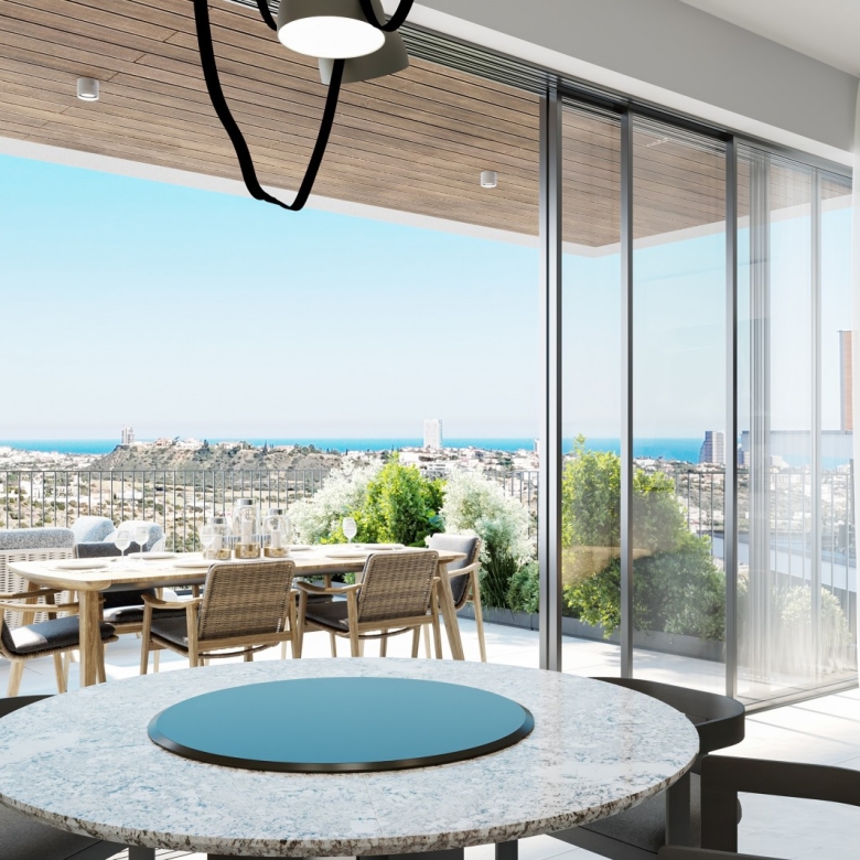 A premier hillside development located in Germasogeia, Limassol, offering breathtaking views of the city, sea, and surrounding green hills. This luxurious residential retreat combines the peace of hillside living with the convenience of city amenities, including bars, supermarkets, restaurants, gyms, and schools, all within easy reach. Residents enjoy a tranquil setting and a quick escape from the urban rush, while remaining close to Limassol’s lively center. The unique blend of natural beauty and urban vibrancy is reflected in the residence’s elegant design, featuring a striking contrast of white stone embellishments and deep grey wall cladding. Ensuring a lifestyle where luxury and convenience coexist in harmony.