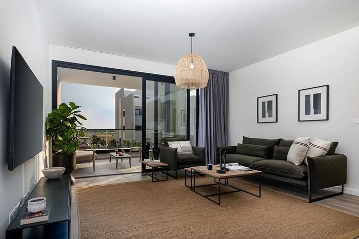 Minimalism in this project’s interior and exterior design intentionally gives maximum power to all architectural spaces. These spaces are designed to emphasize natural lighting and materials, with floor-to-ceiling glass doors framing views out to the internal gardens, the surrounding golf course, or even the Mediterranean Sea. Life on this project includes unique activities and incredible amenities. Engage with nature by riding along the green cycling path, jogging through the trees, or doing yoga against a lush backdrop. Boost your wellbeing by swimming laps in the pool, working out in the ultramodern gym, and rallying on the contemporary tennis courts.