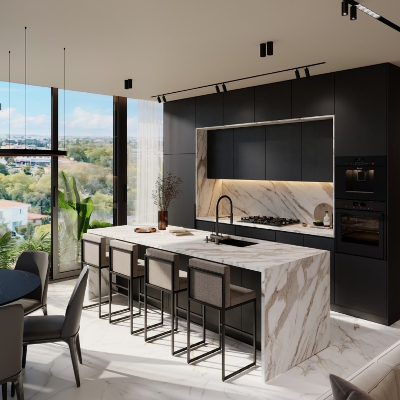 In the serene landscape near Metochi Kykkou, a new chapter in luxury living is about to unfold. A testament to unparalleled elegance and refined living. Nestled amidst the tranquil surroundings of Engomi, Nicosia, this exclusive development pays homage to the land it inhabits, drawing inspiration from its rich history and natural beauty. Boasting 8 meticulously crafted towers and a total of 280, 1, 2, 3 & 4 bedroom apartments, each exuding sophistication and opulence, this development offers a lifestyle of incomparable comfort and prestige. With floor-to-ceiling glazing adorning their facades, each tower offers panoramic views of the cityscape. Landscaped balconies grace every residence, merging urban living with natural beauty. At the estate’s centre lies a serene oasis—a central pool surrounded by 8,000m2 of lush landscaping.  o er residents an un precedented array of exclusive amenities and services, including a private rooftop function area, coffee shop, gym, salon, spa, car wash, and a pet grooming facility. A dedicated concierge caters to every need, while a private laundry service adds convenience. This gated estate epitomizes urban opulence, in the lively upcoming area of Engomi. A well-established and sought-after suburb, known for its convenient location, amenities, and overall quality of life. Engomi offers a range of benefits that contribute to a comfortable and enjoyable lifestyle.