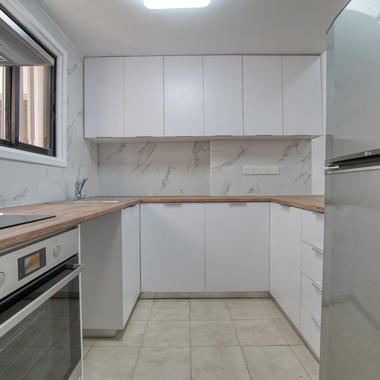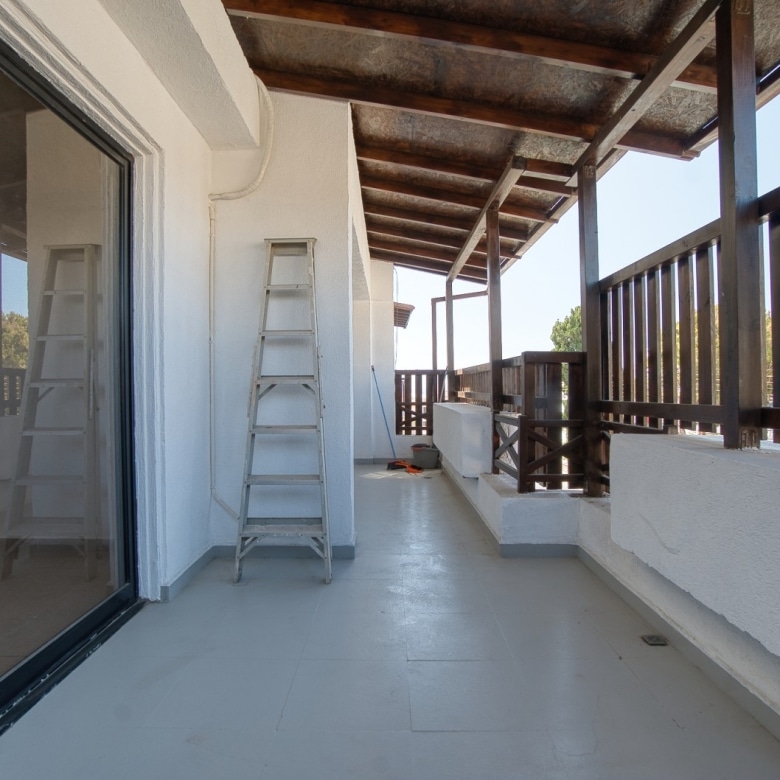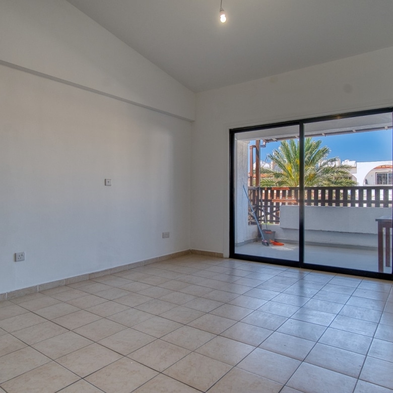 Spacious 2 bedroom apartment for sale in the area of Chloraka. The apartment is part of a building. There are two big bedrooms and a family bathroom. The kitchen is semi-separate to the living room and dining area with its own covered veranda.  The living room and one of the bedrooms shares a large veranda.