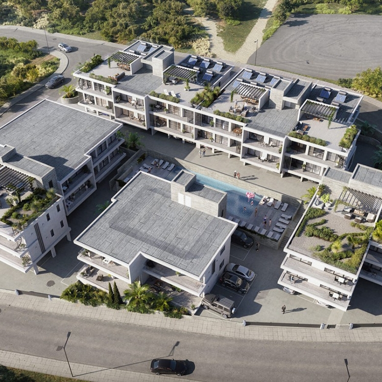 Introducing an exclusive gated community located in the developing area of lower Geroskipou, Cyprus. With its contemporary style and luxurious interiors, this residential complex offers a truly exceptional living experience. The community comprises five apartment blocks, thoughtfully designed to maximize the breathtaking panoramic sea views that can be enjoyed