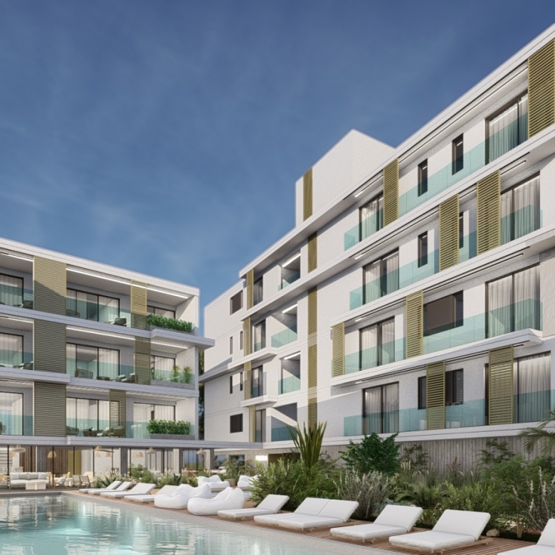 An exclusive project by featuring 56 luxury apartments, a clubhouse, restaurant, gym, a half-sized Olympic swimming pool, and boasting full-service amenities with a 12-hour concierge. Perfectly situated in the vibrant tourist area of Kato Paphos – Universal, just a short walk from the harbour, beaches and the King’s Avenue Shopping Mall, epitomizing convenience and leisure at your doorstep. Each residence is a testament to modern luxury living, featuring expansive layouts adorned with premium finishes, high ceilings, and cutting-edge comforts like VRV cooling and underfloor heating systems. Enjoy the luxury of large balconies, ideal for soaking in the Mediterranean breeze. Every residence features top-tier specifications, technology, and high-end materials.